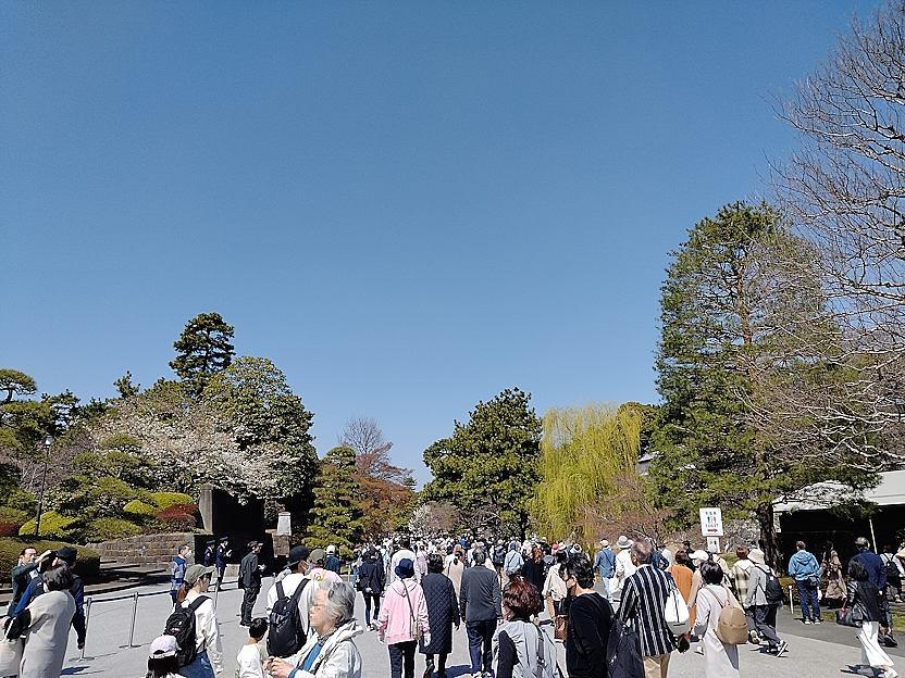 皇居の乾通りでは一般公開が開催中であり、多くの方が訪れ春の囁きを感じ取っていました。様々な桜が咲き誇り、皆さん撮影を楽しんでいました。