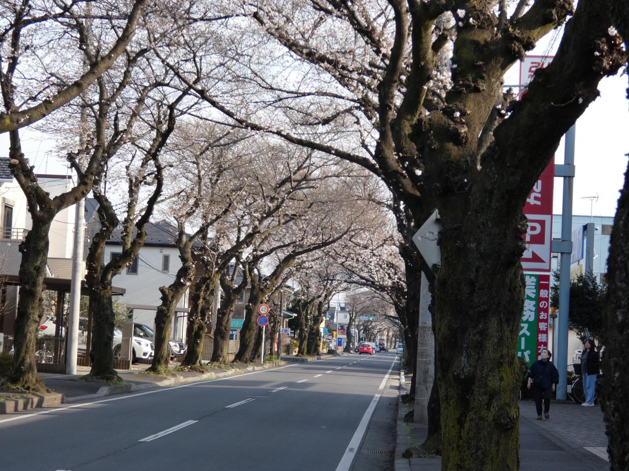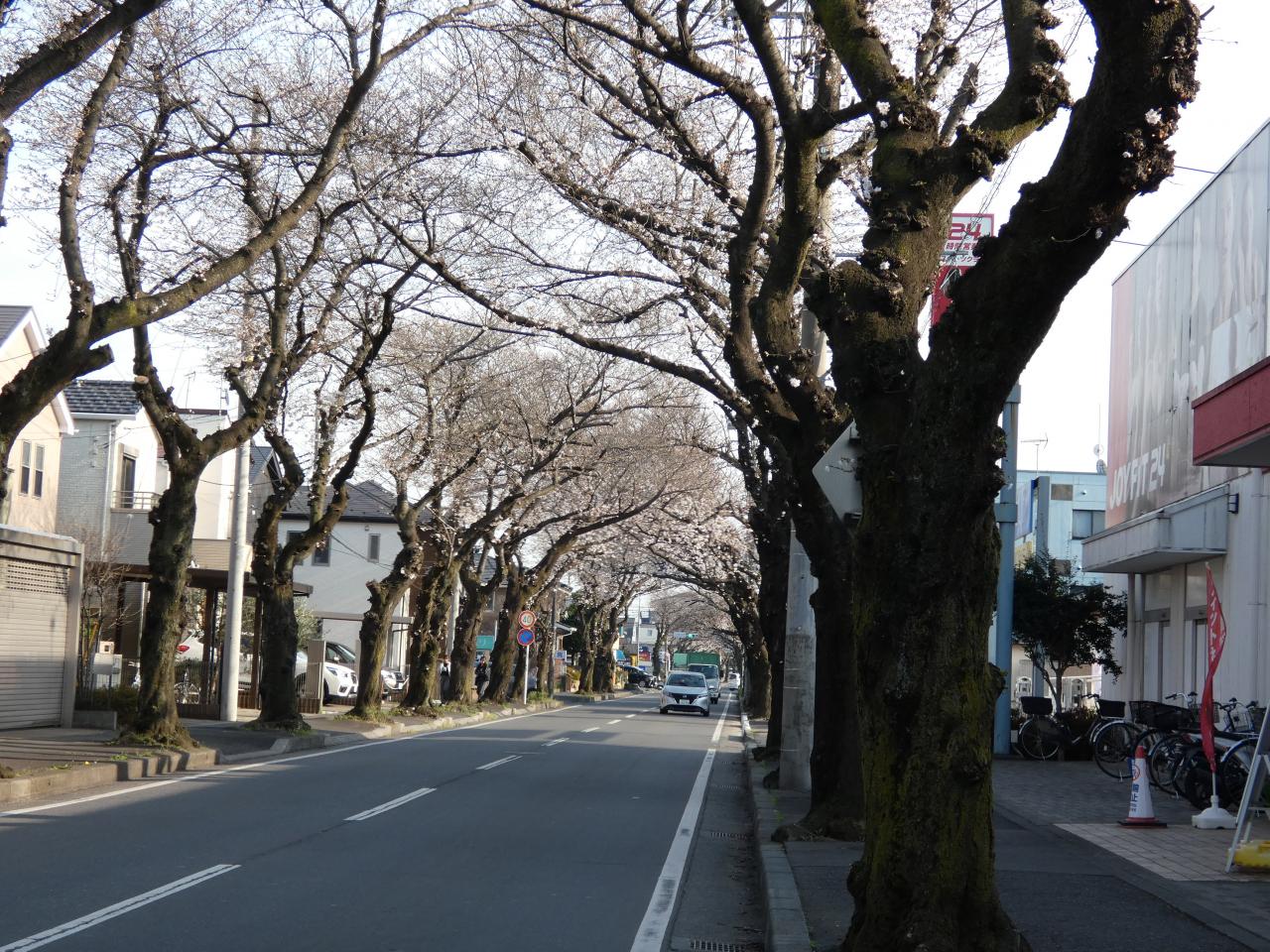 3月24日、午後3時40分頃にふじみ野市亀久保さくら通りの桜トンネルを見に行きました。 ソメイヨシノは3部咲きぐらいでした。 満開になれば素晴らしい約600mのトンネルになります。