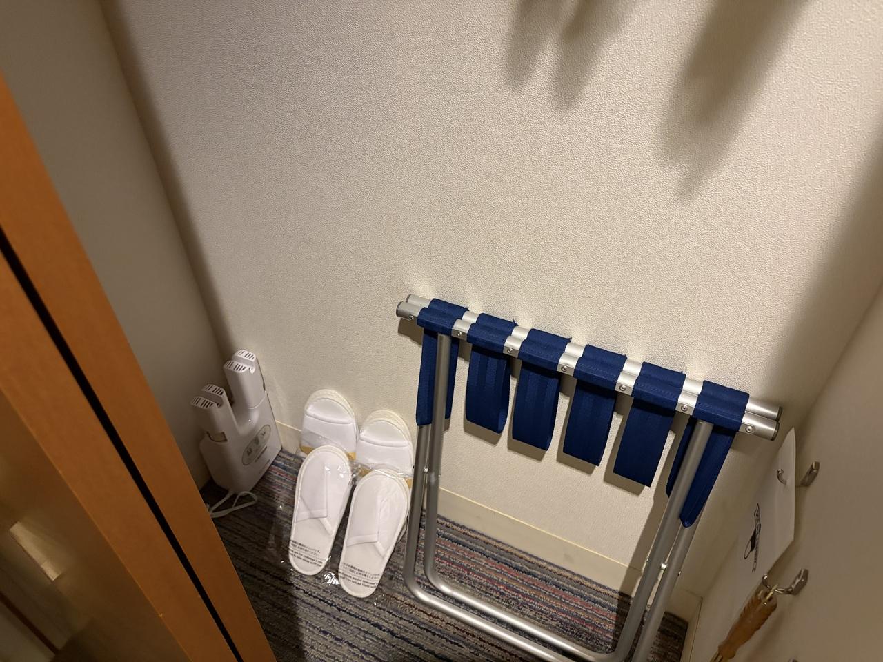 クローゼットの中。お子様用のスリッパもありました。欲を言えば、子供用のパジャマがあれば最高なのになーと思いました