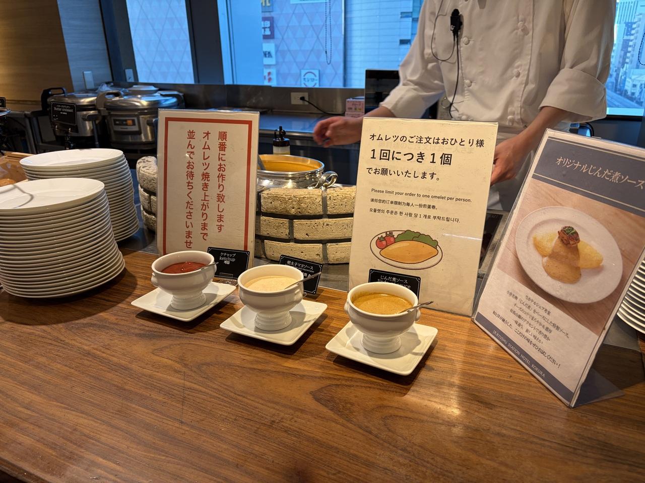 ライブキッチンはオムレツ。シェフがその場で作ってくれます