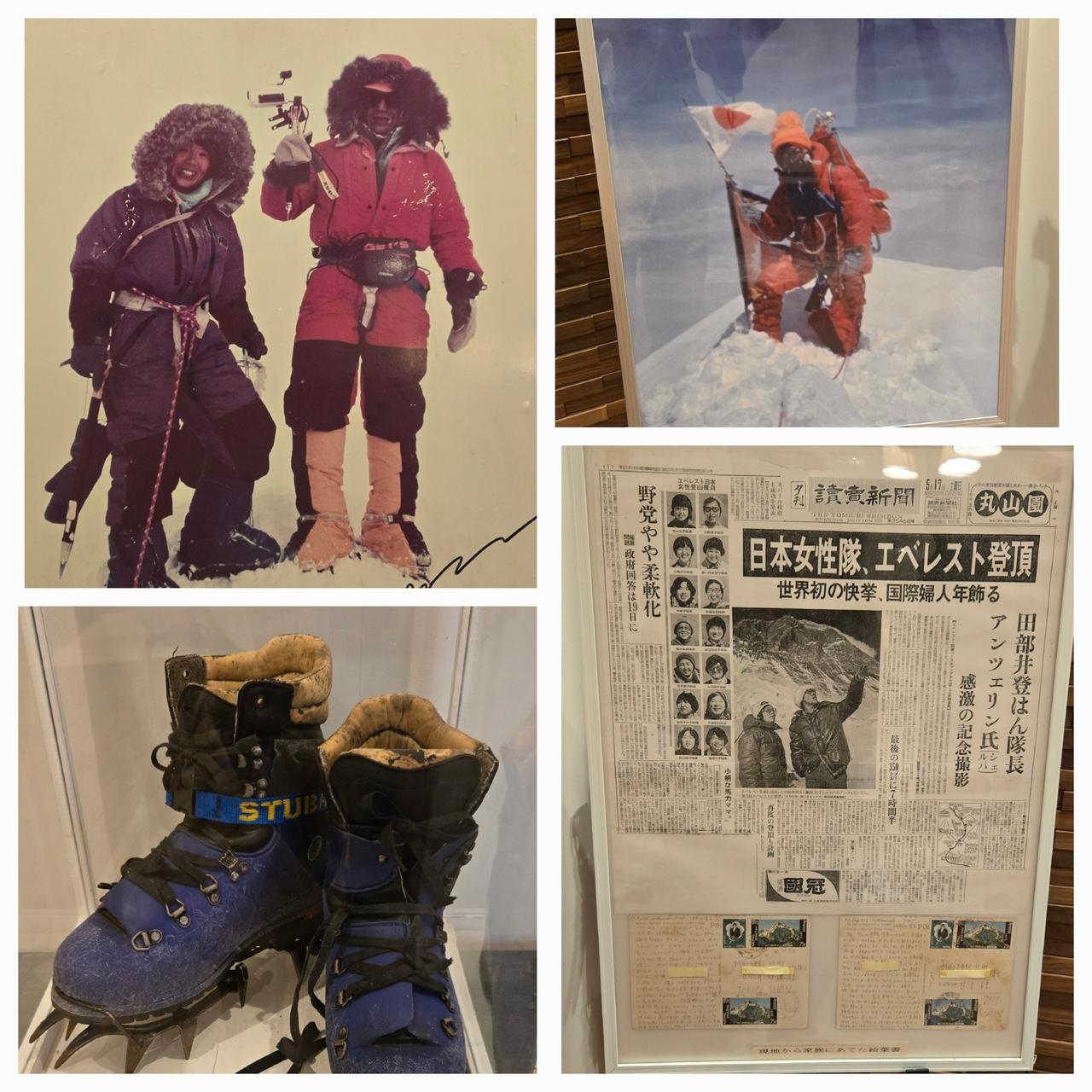 沼尻高原ロッジは、世界初の女性エベレスト登頂者である田部井淳子がかつてオーナーをしていたロッジです。そのため田部井さんの写真や田部井さんが使用していた登山靴などが館内のあちこちに展示してありました。
