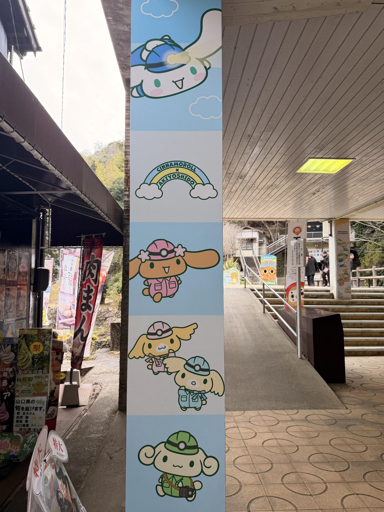 シナモロールとコラボしてるのかな?入り口にシナモロールがあちこちにいました。秋芳洞 自然・景勝地