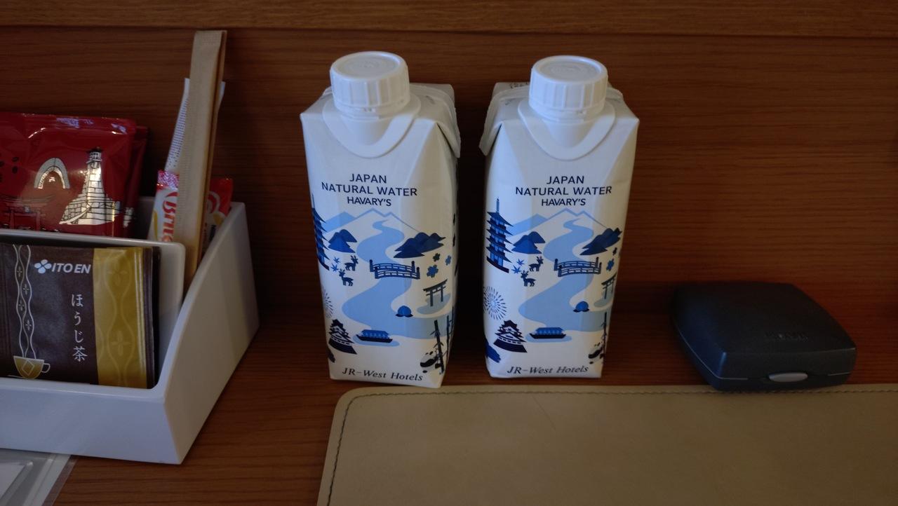 部屋備え付けの水は紙容器でした。 -
