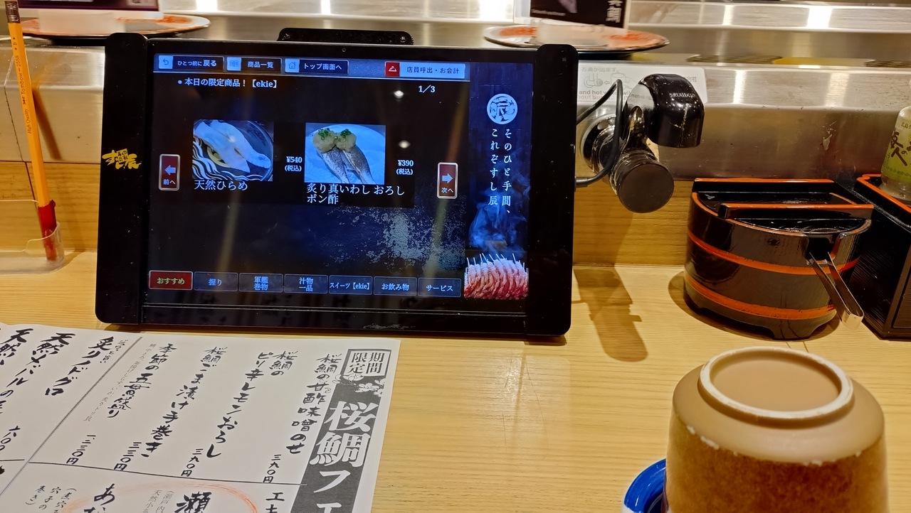 お隣は外国からのお客様?男性2名。上手に箸を使っていろんなネタを食べて感想を言い合っていました。 -