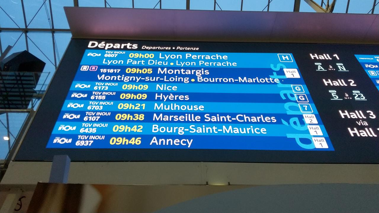 今回の旅行の出発点はパリ・リヨン駅。しかも金曜夕方ではなくて土曜日出発なので朝です。乗車予定は9:38発のマルセイユ行きTGV6107便、途中のアヴィニョンTGV駅で下車して、アヴィニョン中央駅まで在来線で移動するという行程です。