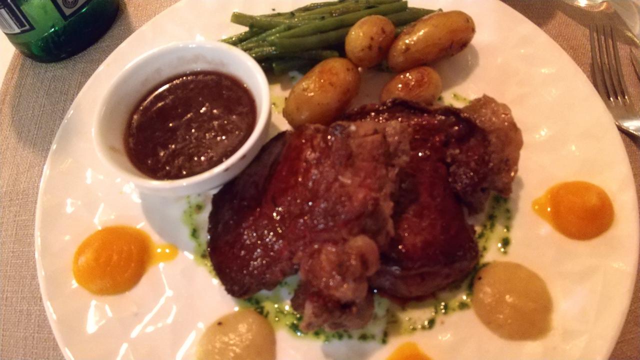 そして私のメインはPiece de Boucher。直訳すれば「肉屋さんのかけら(肉片)」で、要は肉屋さんオススメ部位のステーキ。味付けはレストランによってまちまちなんですが、ここのレストランも柔らかくて美味!現地のレストランやブラッスリーでよく見かけるので、もし注文に迷ったらPiece de Boucherにしてみるのもフランスっぽくてよいかも。