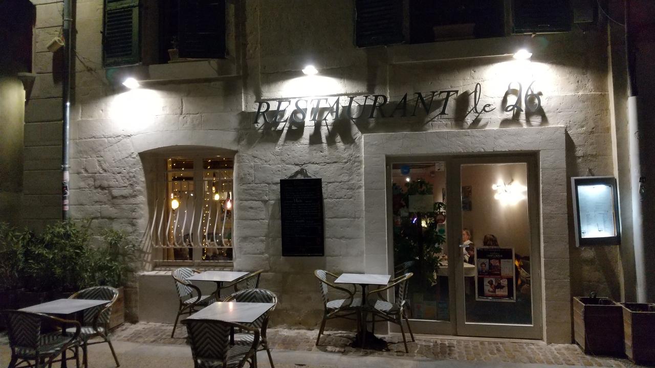 さて今日のディナーはホテルの少し東側にあるLe 26というレストラン。我々が普段旅行中に訪れるレストランの中では割といいほうです。今回は1泊なので、たまにはいいでしょう。予約の18時半に行ったらちょうど開店のタイミングだったようで、我々がこの日のディナーの一番乗り。