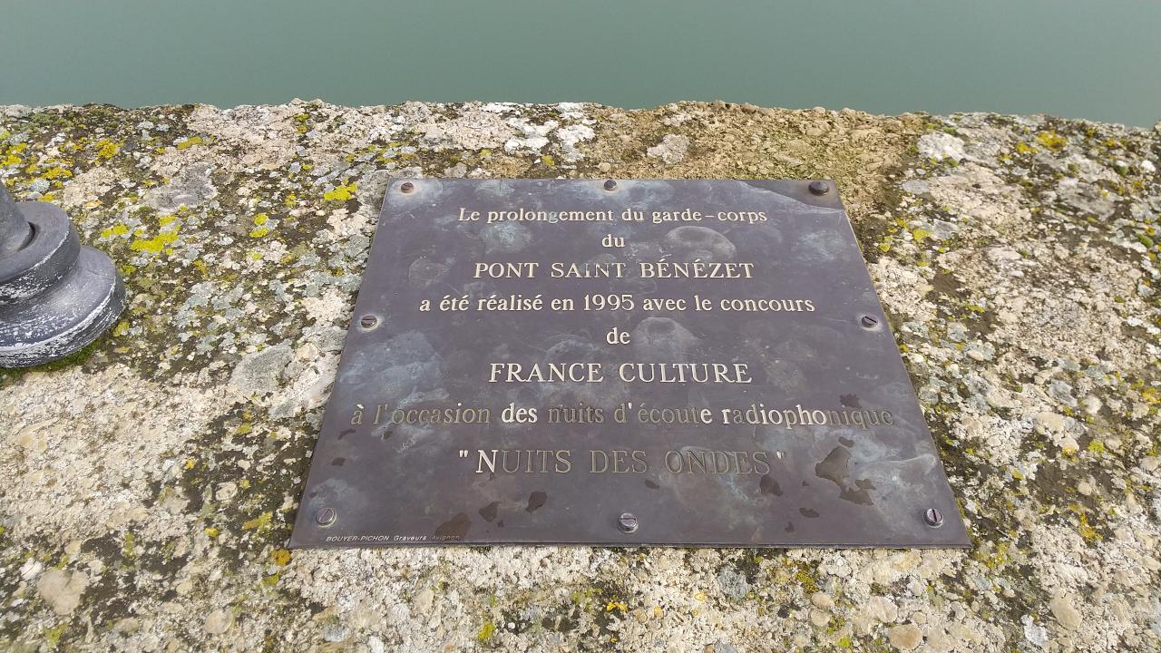 「サン・ベネゼ橋の手すりの延長工事は、『Nuits des Ondes(音の夜)』の開催に合わせて、フランス文化庁の支援を受けて1995年に実施された。」