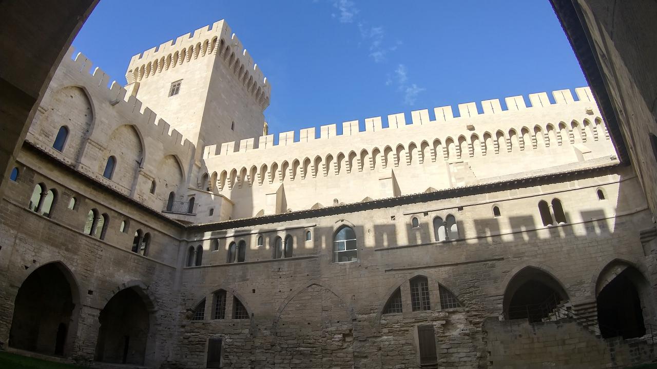 14時ちょうど、法王庁宮殿にやってきました。今は教皇庁って呼ぶのでしょうか?アヴィニョン観光の目玉のひとつですね。ここに法王庁があったのは14世紀の話でアヴィニョン捕囚と呼ばれているんだそうです。バビロンしか知らなんだ。
