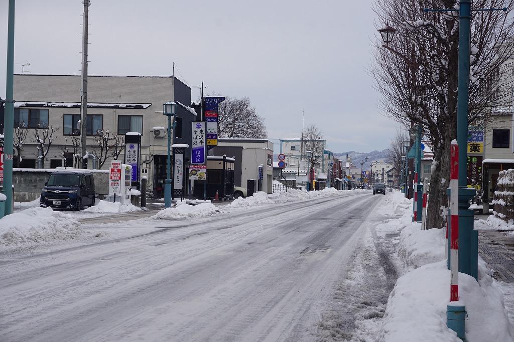 駅前は、綺麗に雪かきされていた部分もありましたが、きっとここは、そのままの状態。ほんま、米沢って雪深いのね。 -