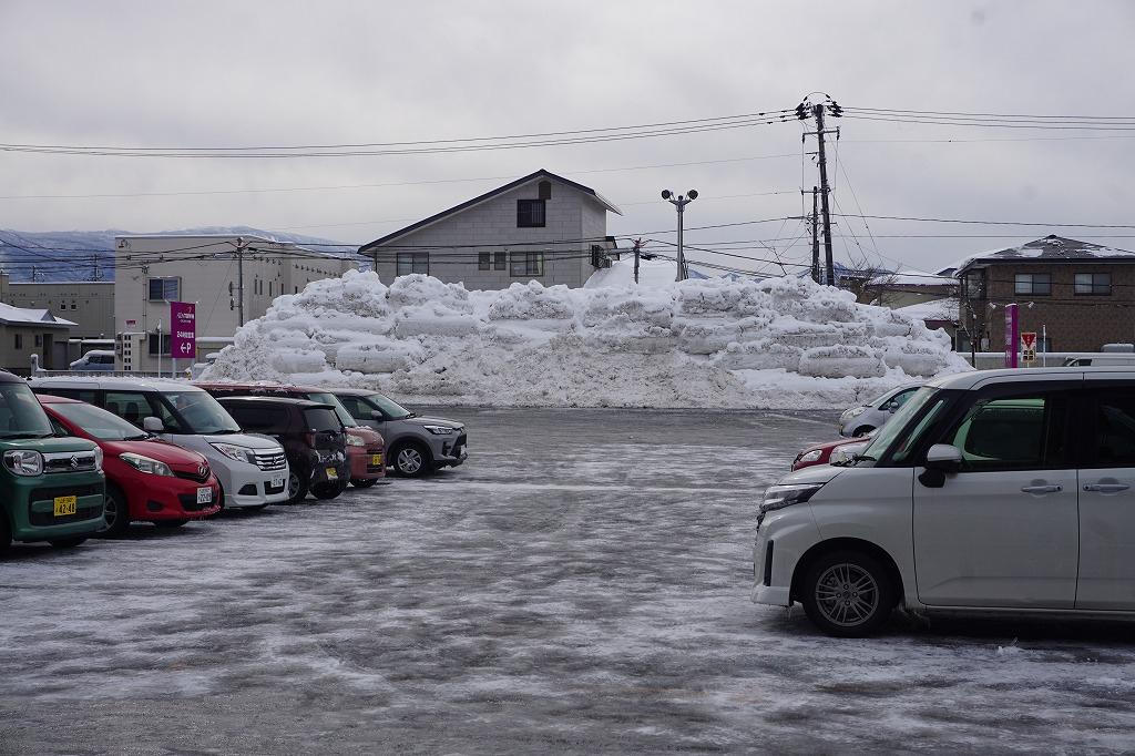 スーパーの駐車場に、雪の壁。