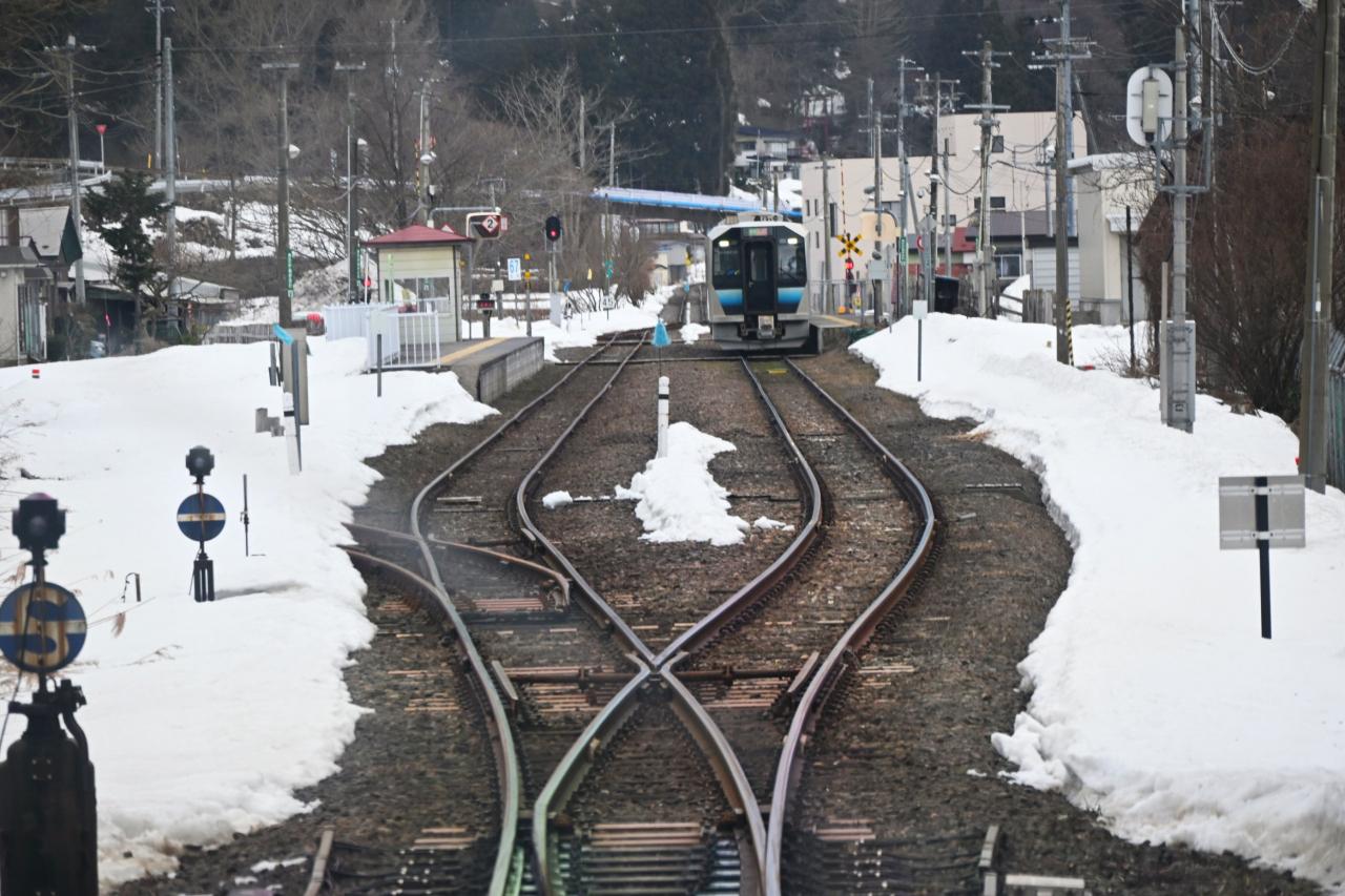 単線ですので駅にて各駅停車地とにすれ違いです。