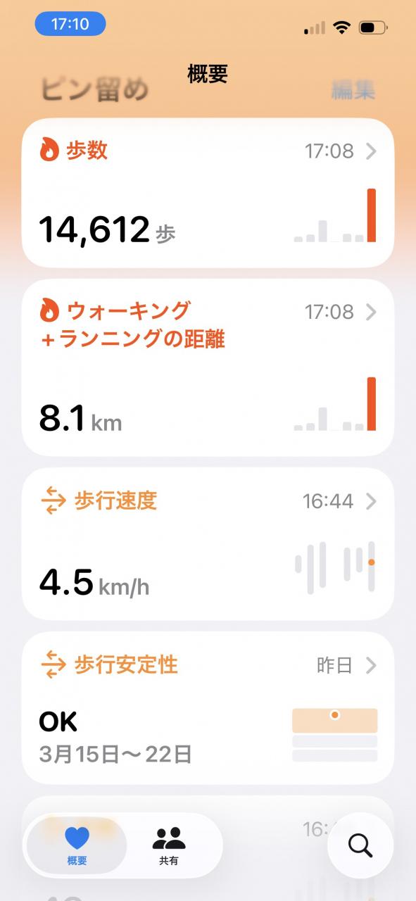 1日1万歩以上もしっかり歩かれていて、パワーをもらいました。