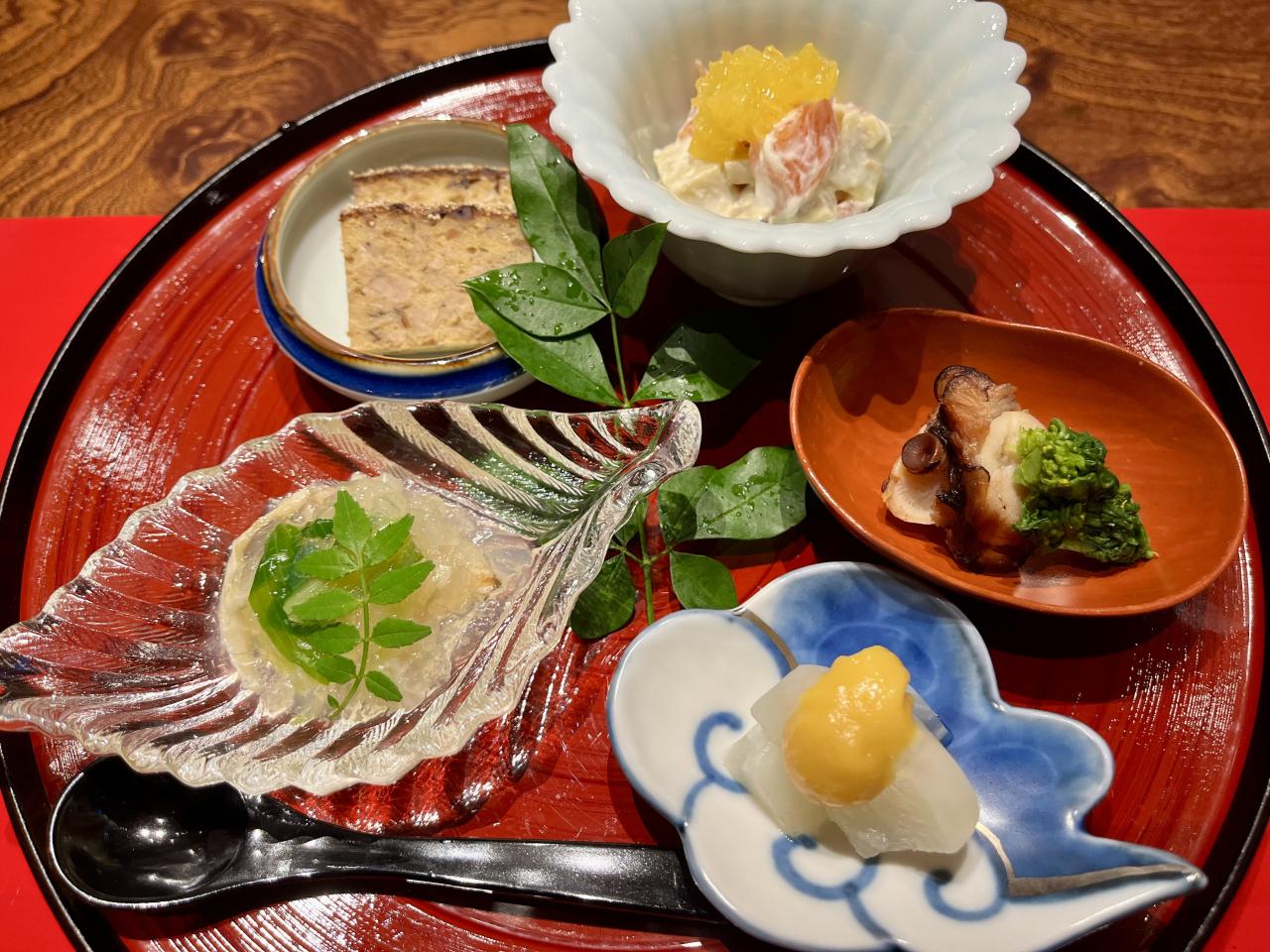 さらに鶏松風まで並び、ひと皿のなかに春らしさと土地の味がきれいに収まっていました。 -