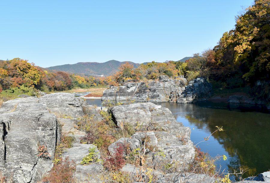 そこをスタートに 長瀞渓谷の紅葉を眺め