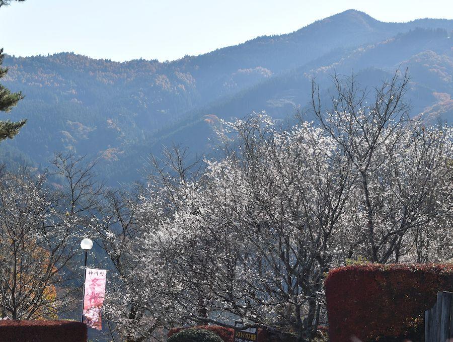 直売所のある広場の下の方 桜が咲いているのが見えました。