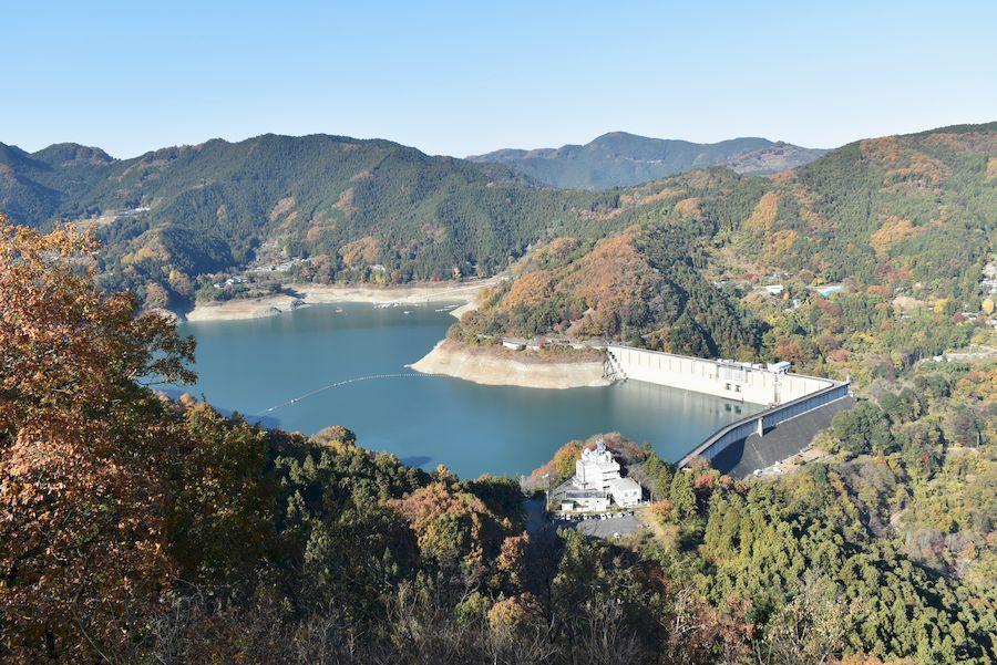 ダム湖の近くに紅葉の景色が見られると思って来たのです。