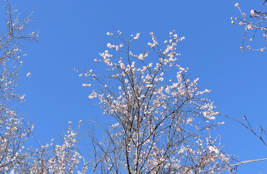 少し小さめの冬桜は 春の桜ほど 花びっしりとはなりませんが