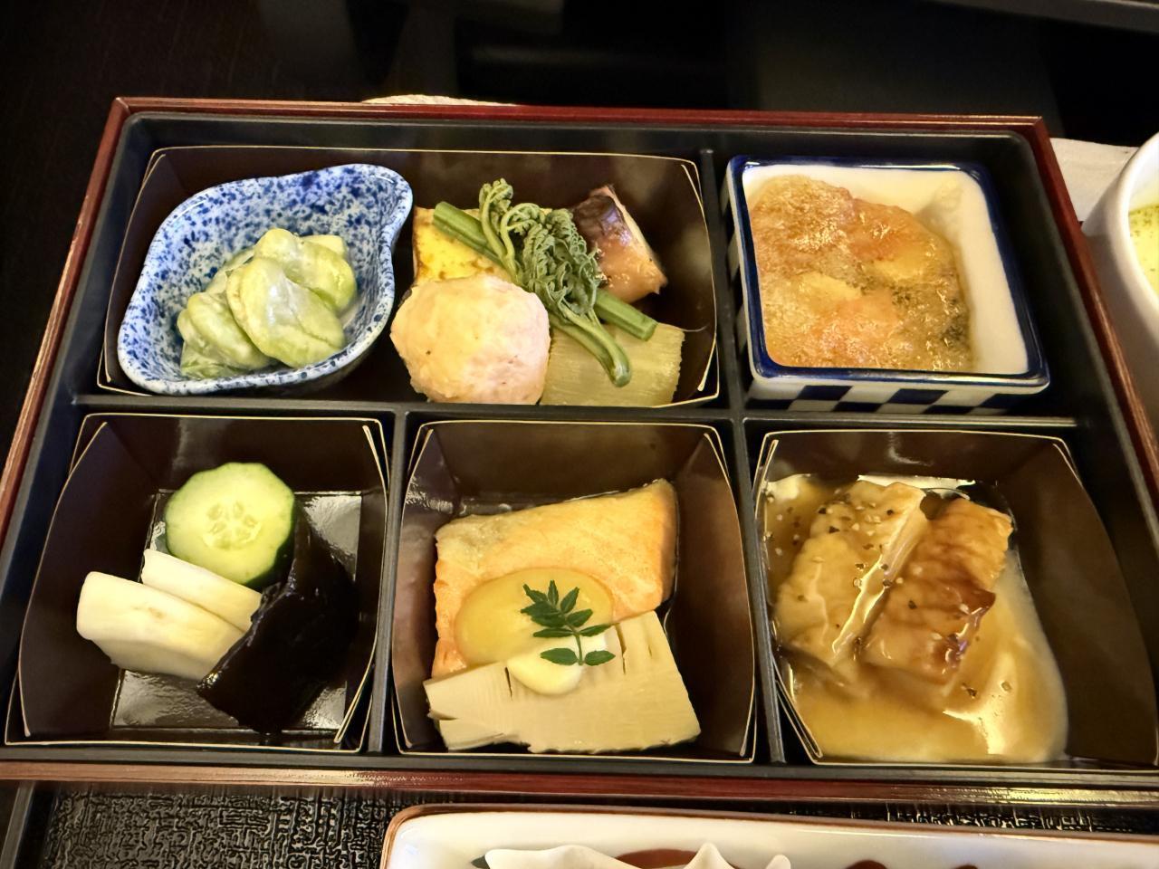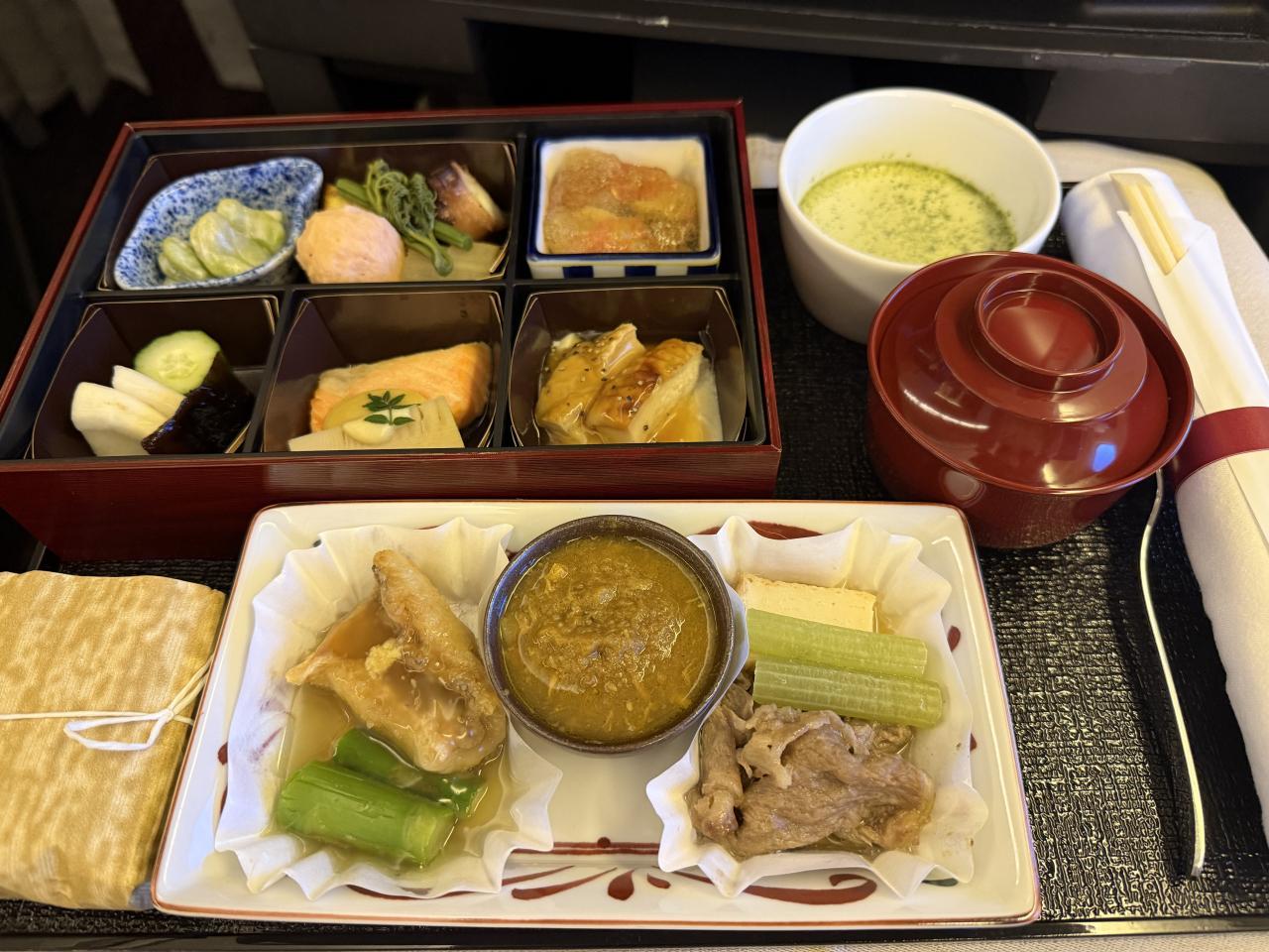 到着前にCAさんに声をかけてもらって、お願いしておいた和食を食べまーす!