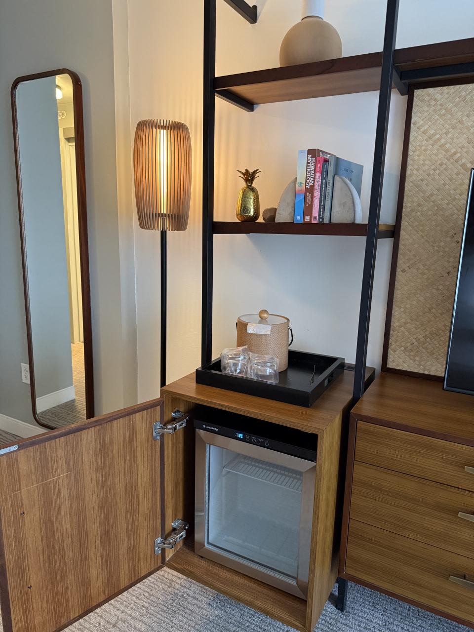 その代わり、リゾートフィー$50に含まれるバスケットの中に、お水を入れて持ち運べるタンブラーがあって、1階のウオーターサーバーで「常温、冷水、スパークリング水」を選んで自由にサーブできる仕組み。最近このスタイルが増えてきてますね!