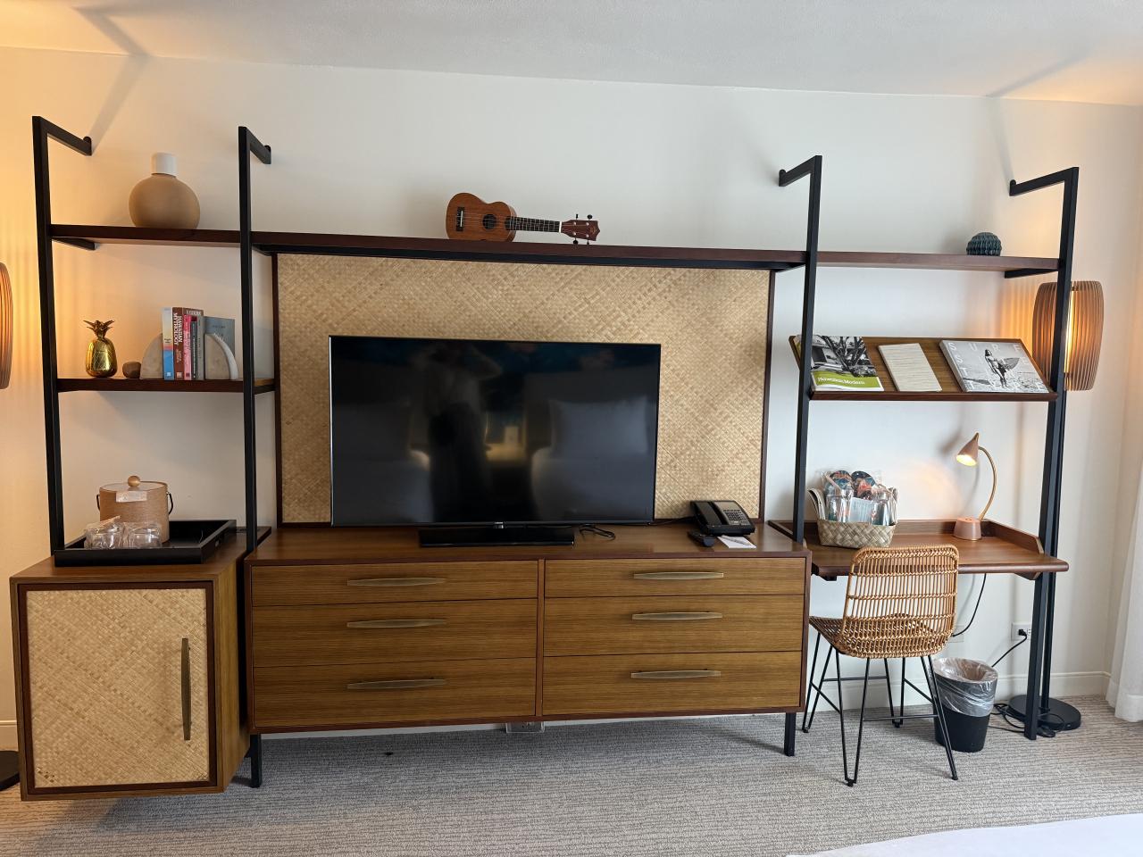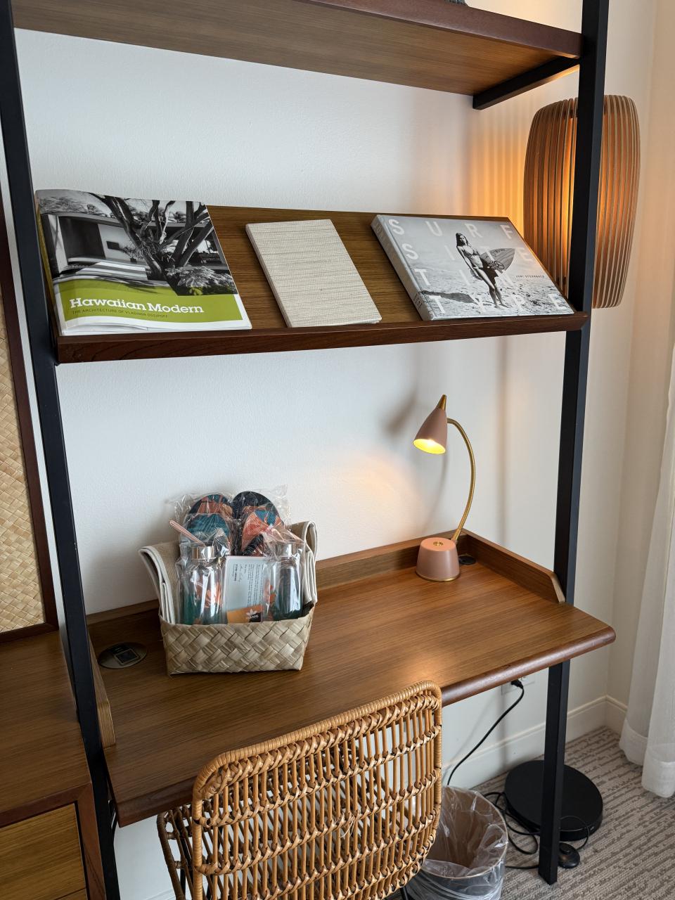 ウクレレがあったり、本や写真集がおしゃれにディスプレイされてていい感じ♪ -