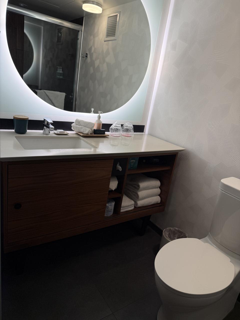 3人なので、キングベッド2台のお部屋。マリオットボンヴォイのプラチナエリートだけど、特にアップグレードはなし。でもどしゃ降りだったこともあって、アーリーチェックインがかなっただけでも感謝!