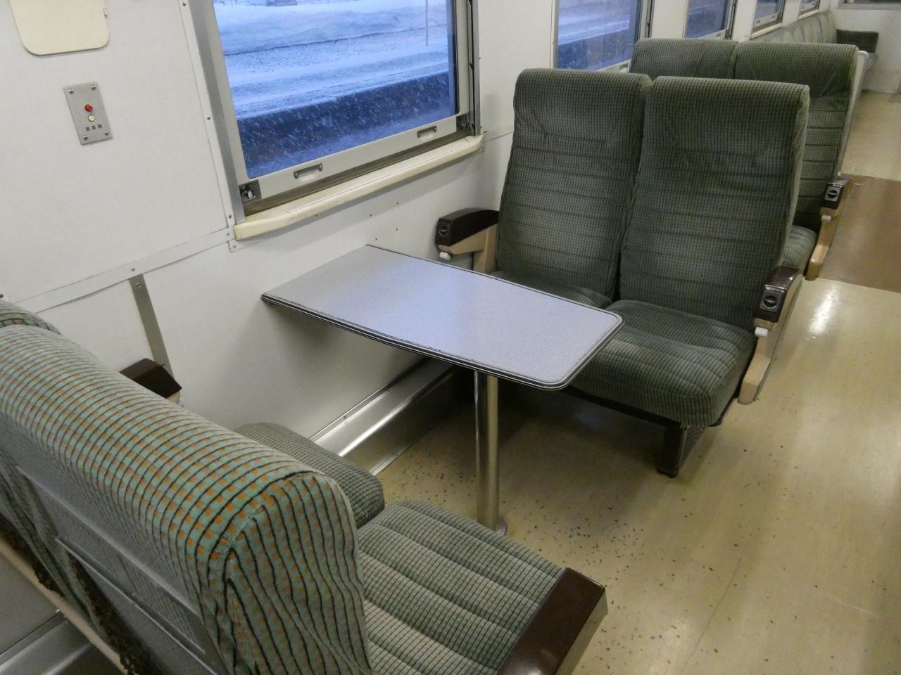 お見合い式固定クロスシート、中央部にテーブルがあります。