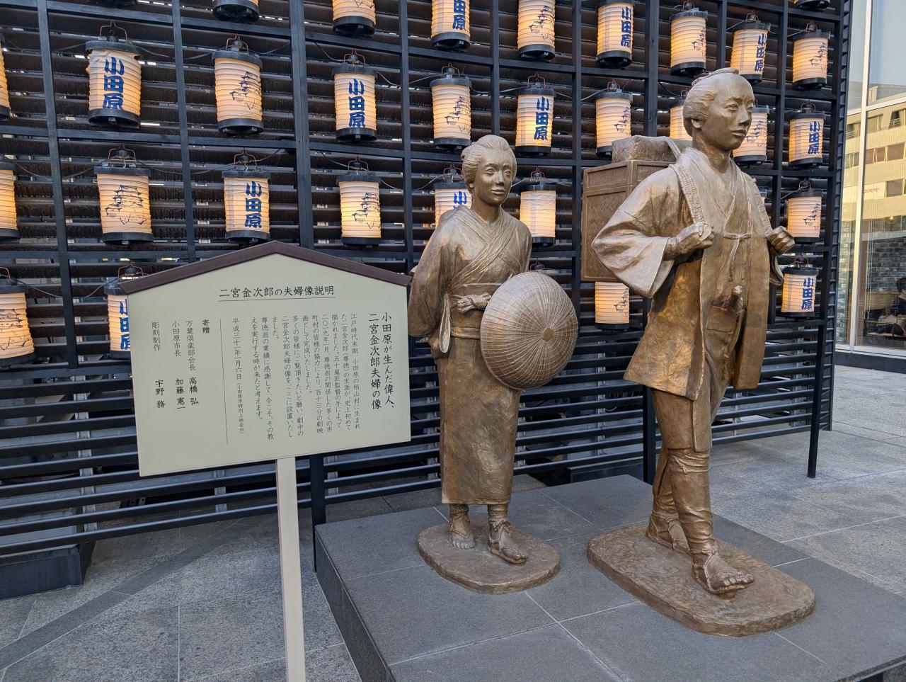 ミナカ小田原 金次郎広場の「二宮金次郎夫婦像」