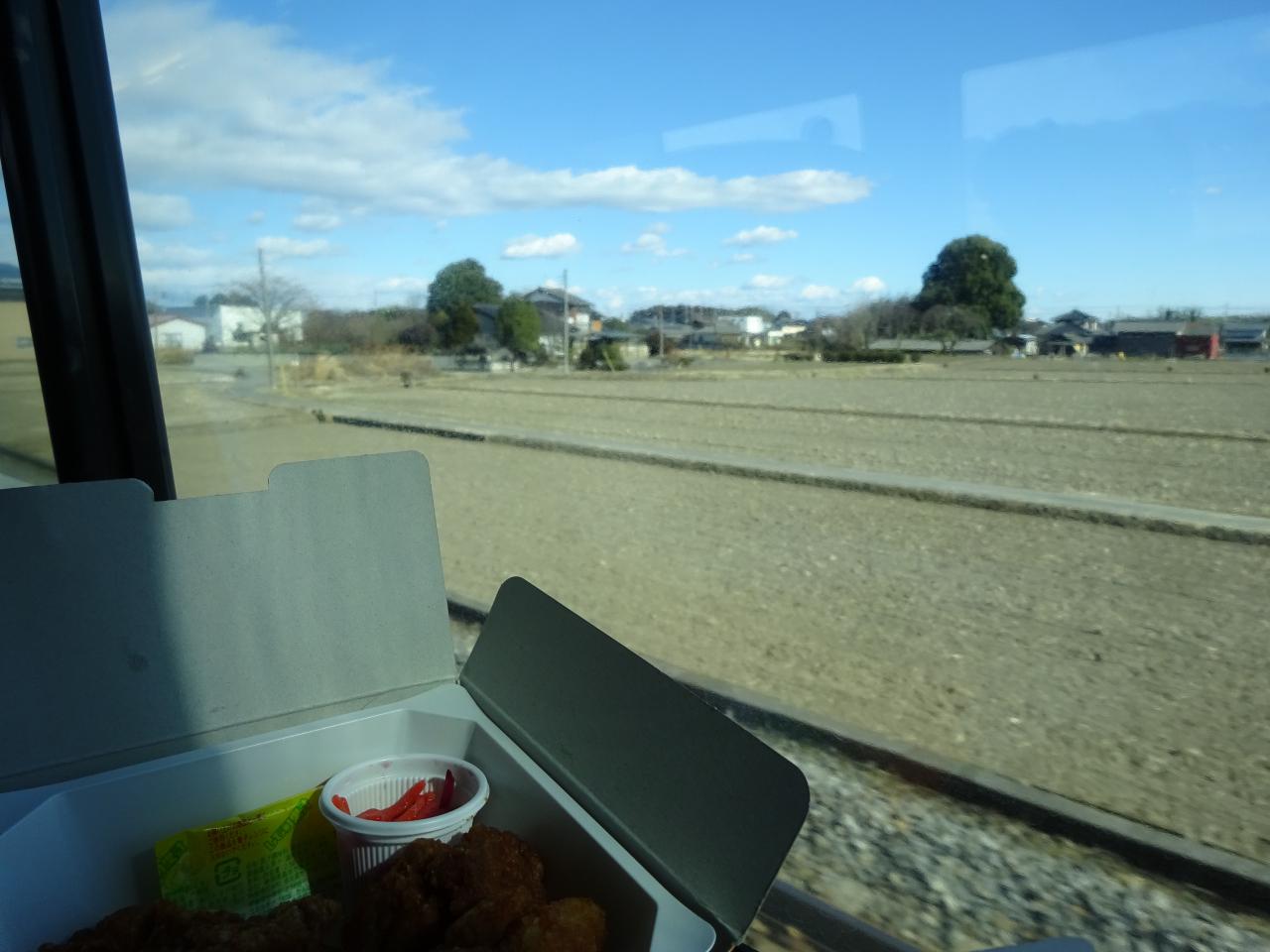 新幹線もいいけど、視界がひらけた特急列車で食べるチキン弁当も最高ですね。