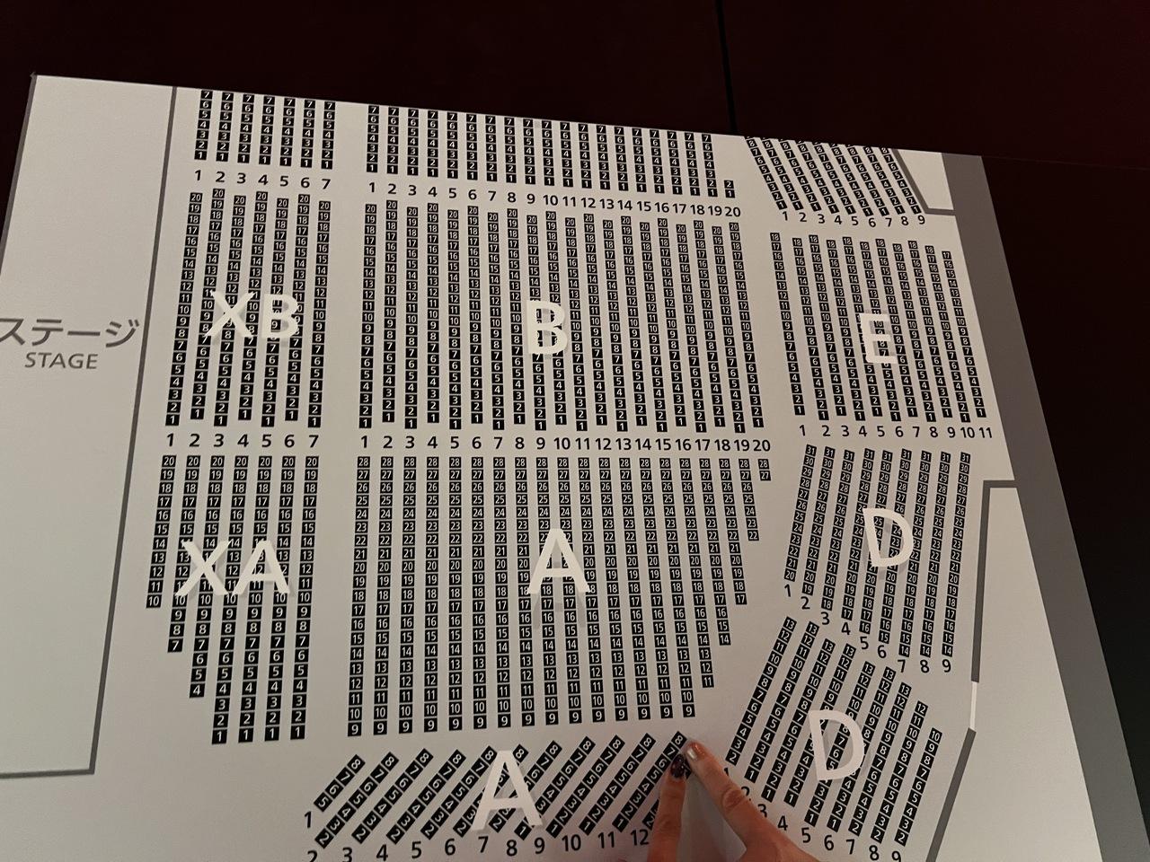 お席はここだったんだけど(めずらしく連番)、行くとあるはずの席がなくて。何度もチケ見ながら確認してたらスタッフさんが来て、急遽その場所にカメラを設置することになり代わりの場所へと案内してくれたんだけど、そのお席がもっと前の方の真ん中に近い所でありがとうございます!