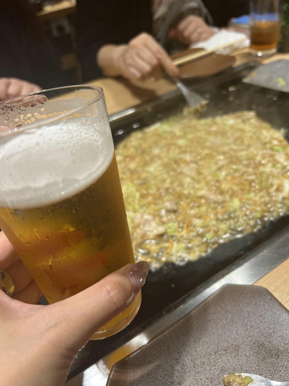 月島のもんじゃ、前に食べた時に美味しかったからまた行けて嬉しかった!本当は飲んだらダメだけどビール1杯だけ…。