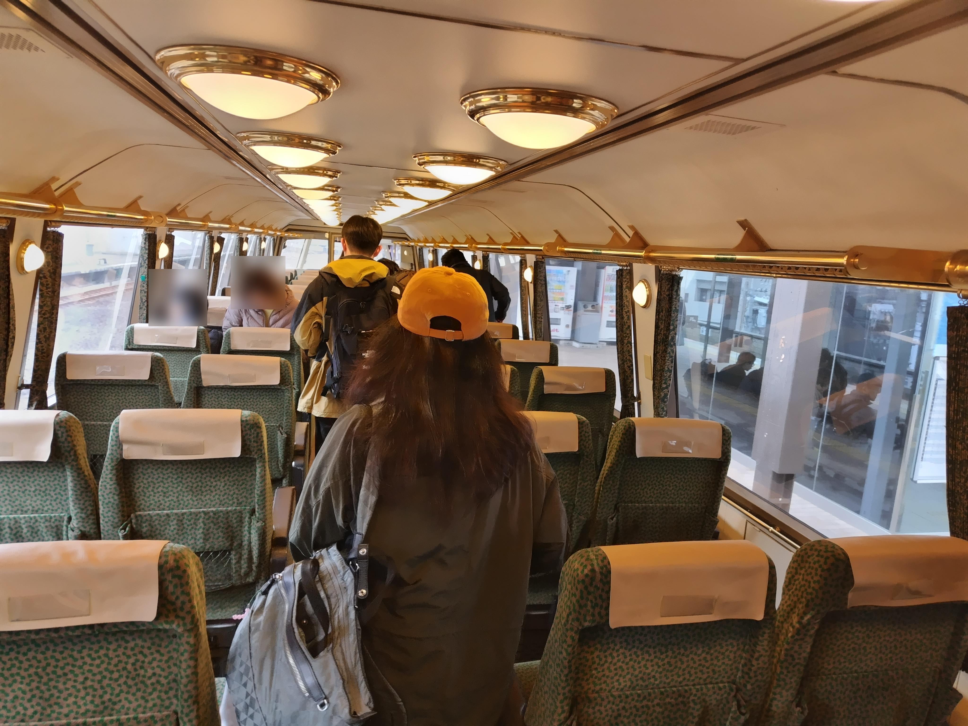 ゆふいんの森は展望席がついていますが、ちょっと展望が今イチのようですね。おまけにインバウンドだらけでその席も取りづらい。しかしほんっっとにインバウンド多いですよね。途中で雨が降ってきたようで、展望席のヒトせっかくなのにかわいそうだねと内心ニンマリしたのでは(^^)/