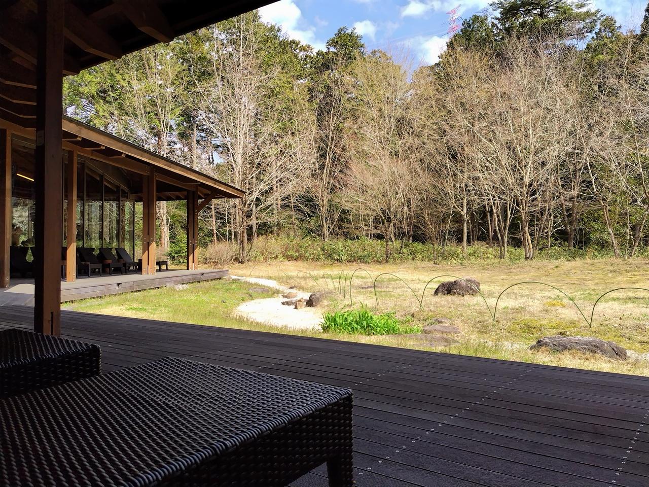 お風呂上がりに森のラウンジは気持ちいいです。