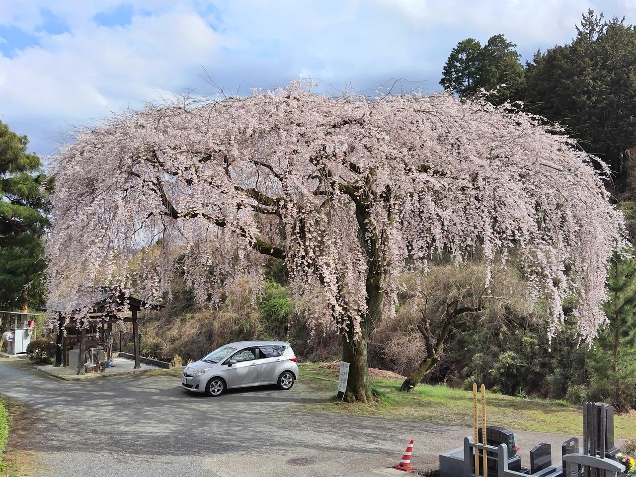 墓地にあるシダレザクラも立派