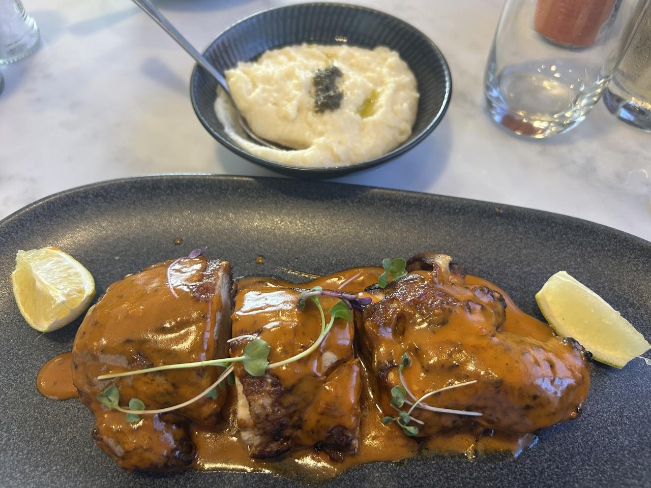 チキンのペリペリソースかけとマッシュポテト。量が多い!