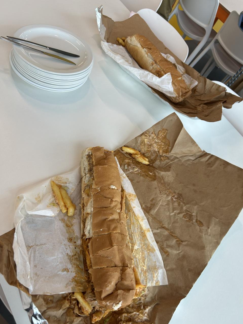 最終日にオフィスにデリバリーしてくれたのはケープ発祥のジャンクフード「ギャッツビー」巨大サンドイッチ。