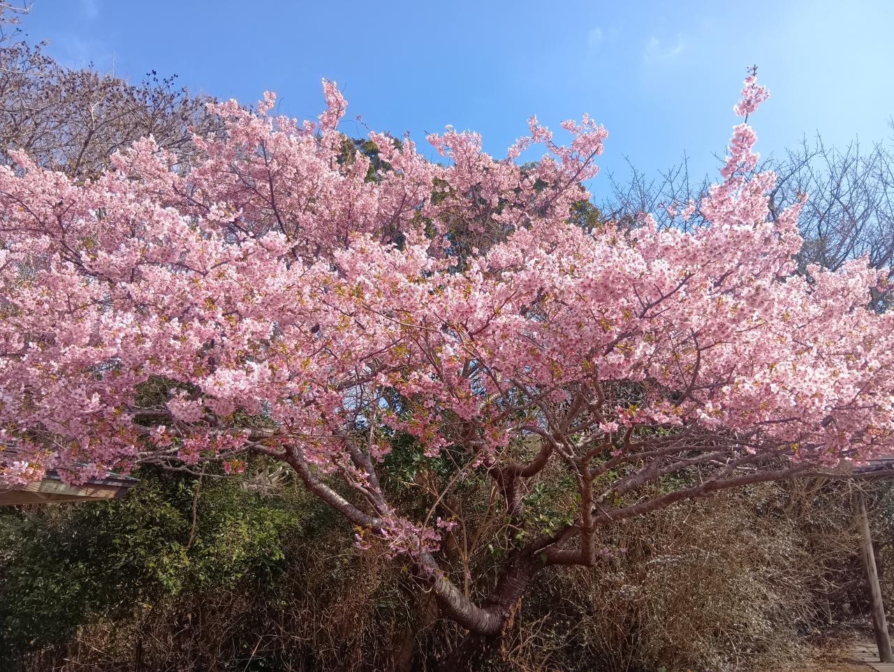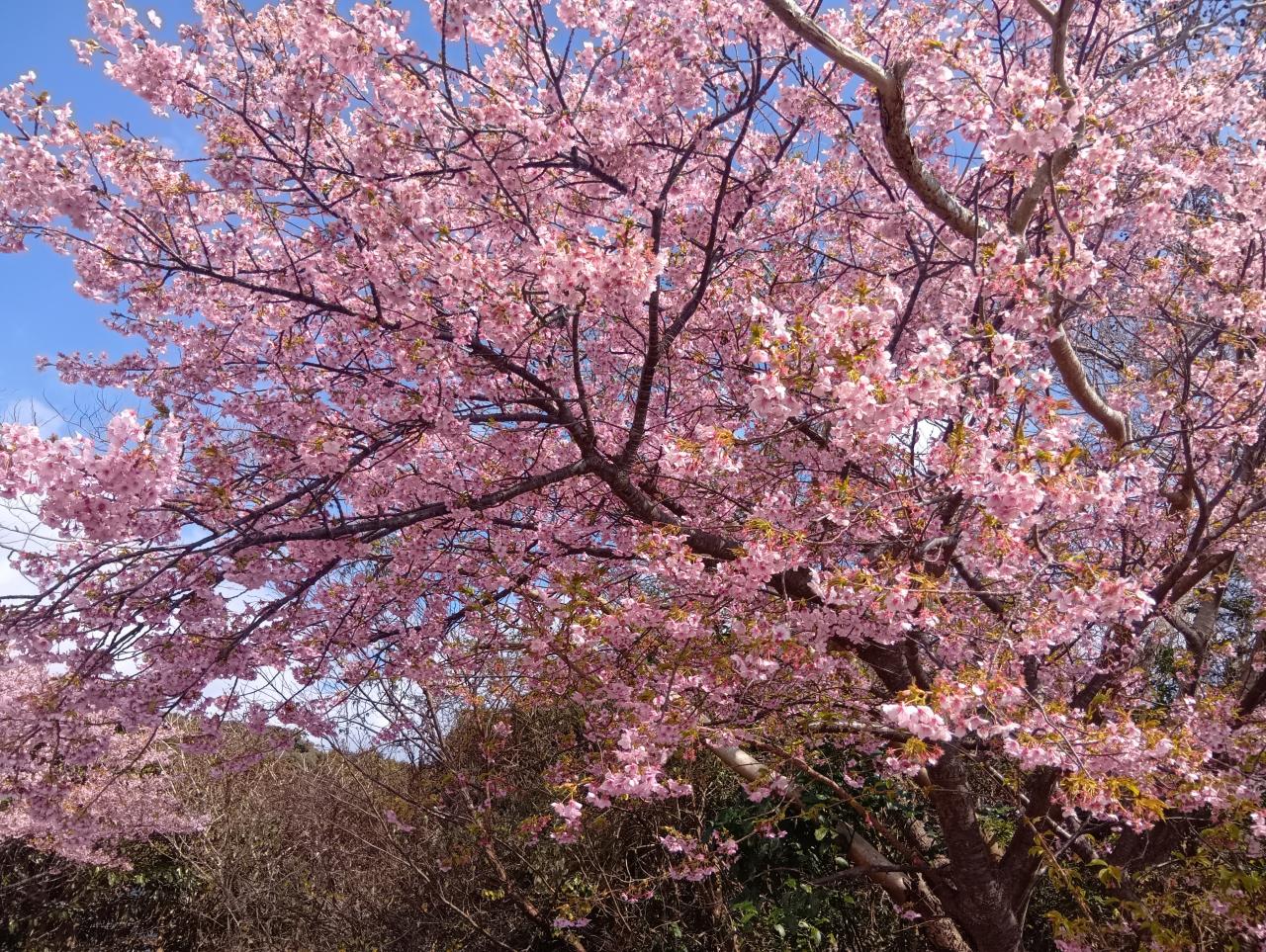 この公園、展望所に何本か河津桜が咲いています。ご覧のようにまさに満開!