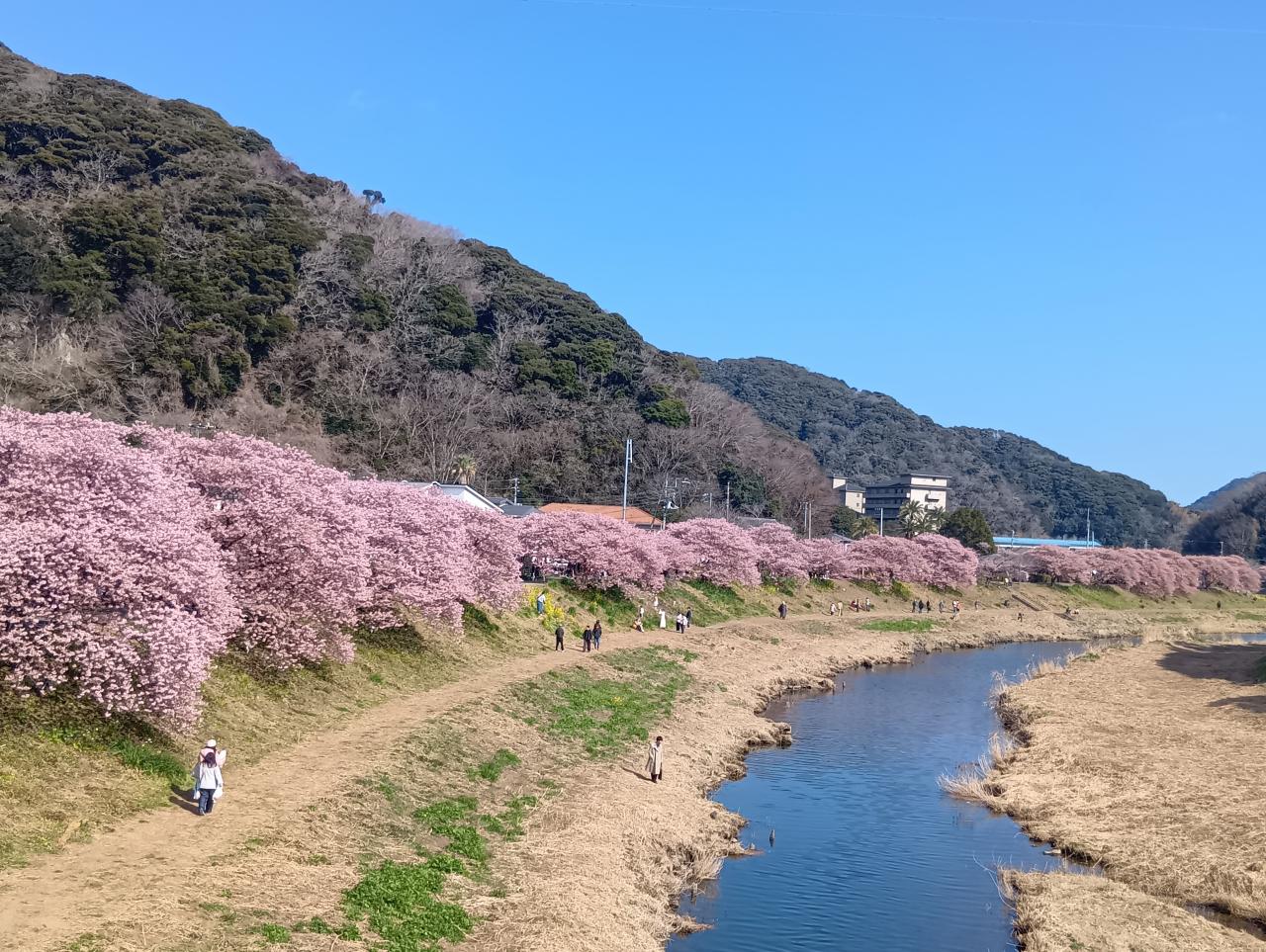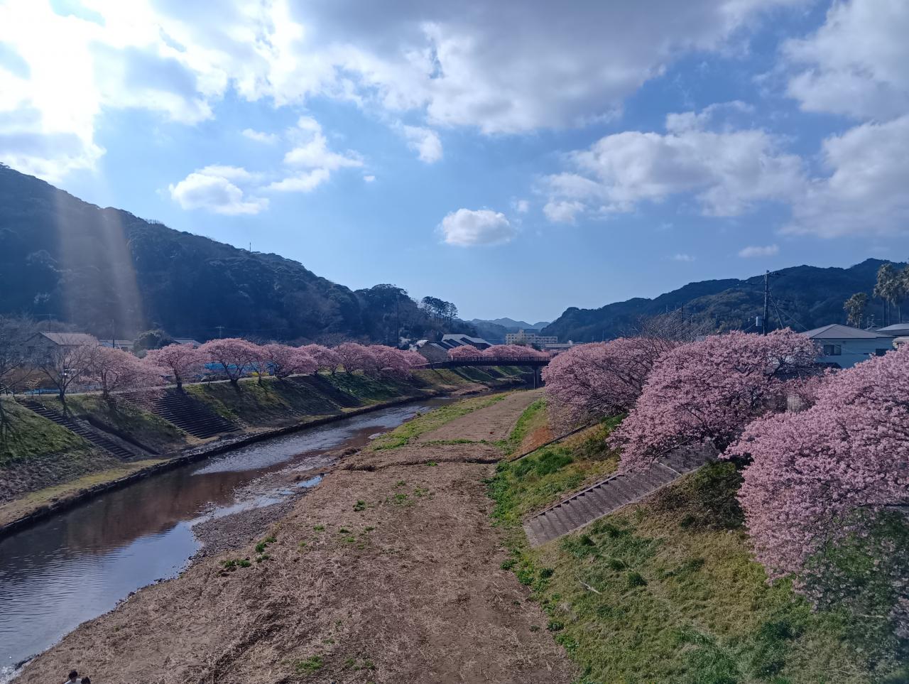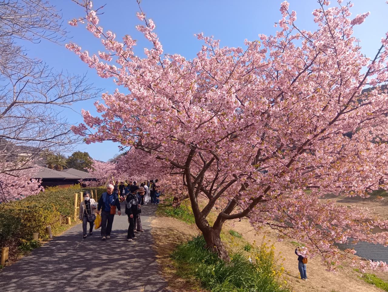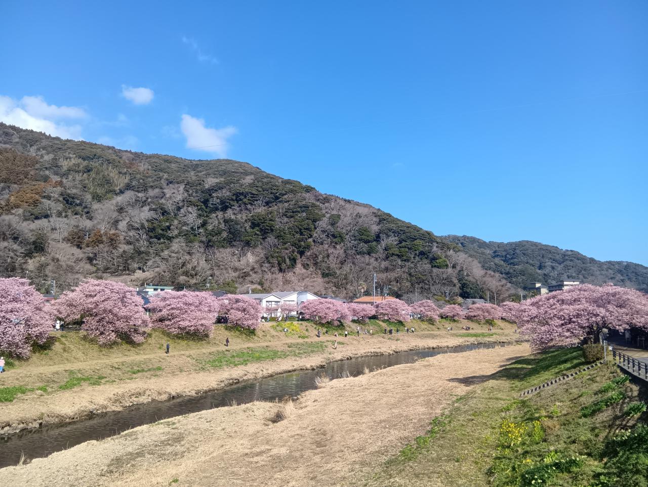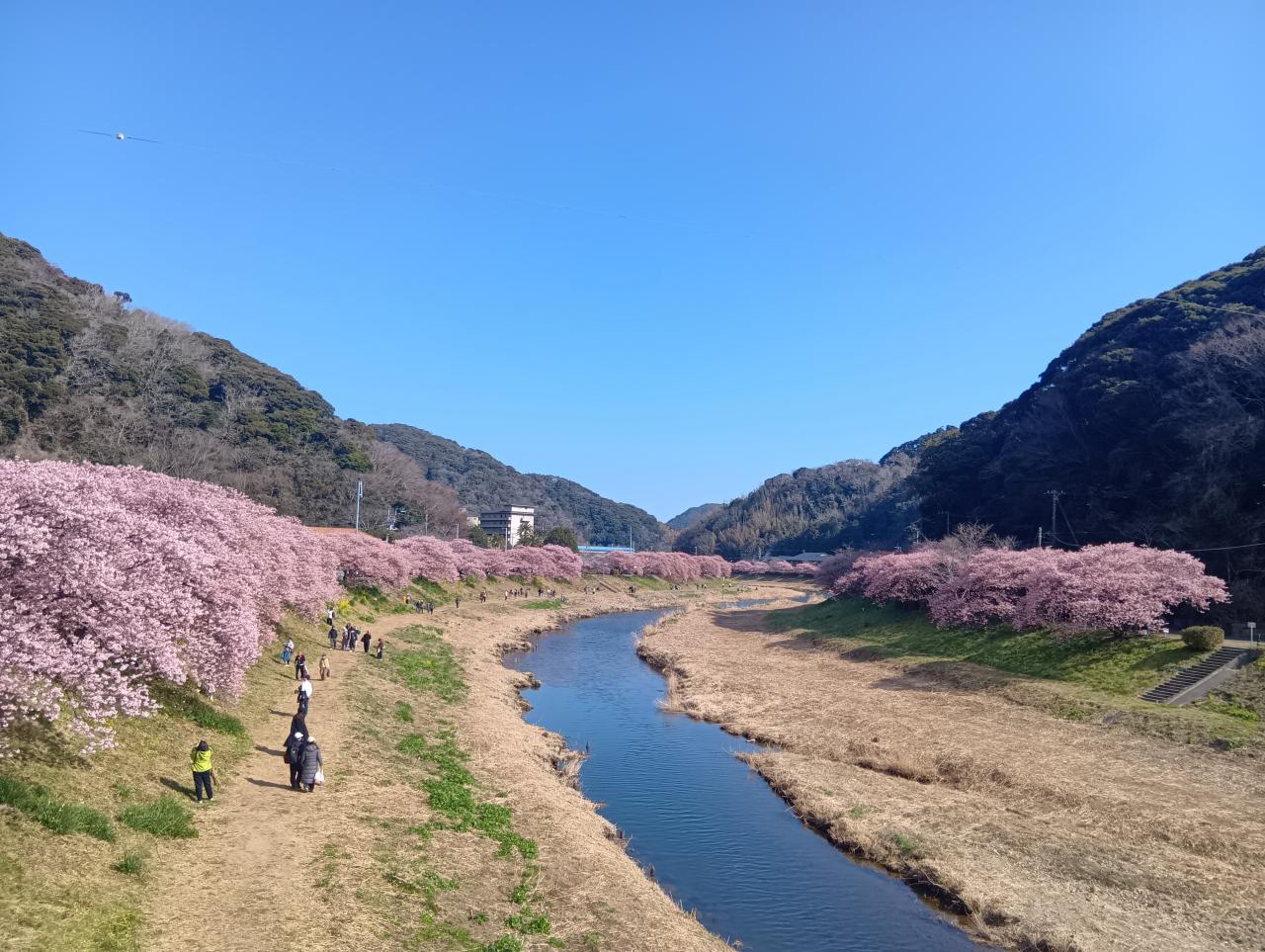 隠れた絶景スポットに超感嘆します!14時45分頃、約1時間半の河津桜の観賞でした。