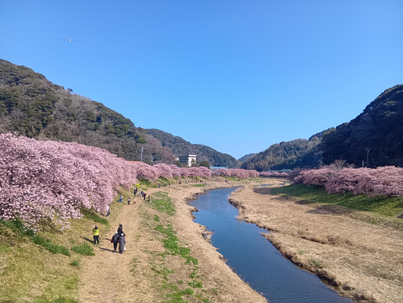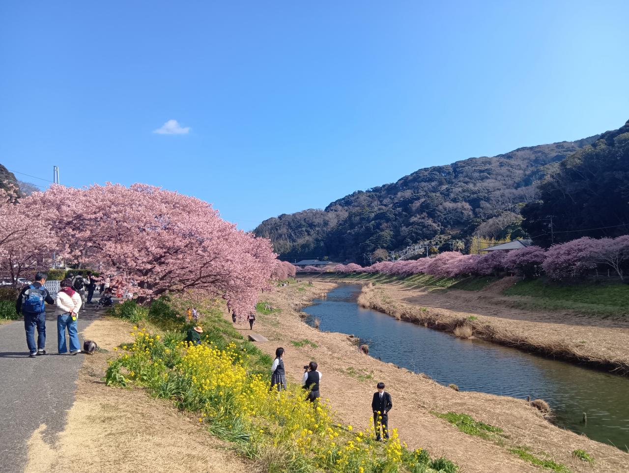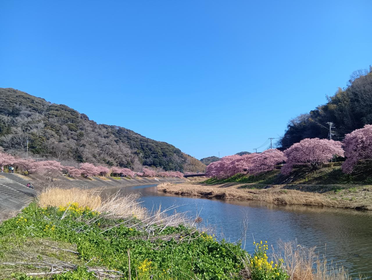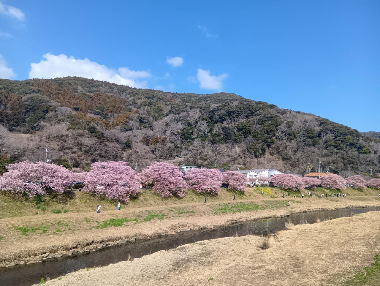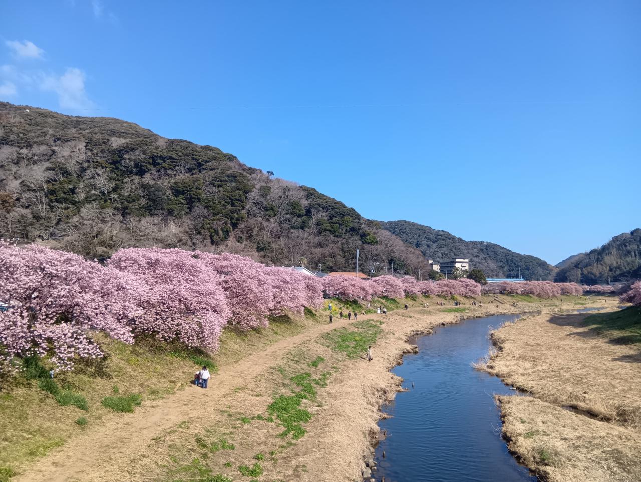 隠れた絶景スポットに超感嘆します!14時45分頃、約1時間半の河津桜の観賞でした。