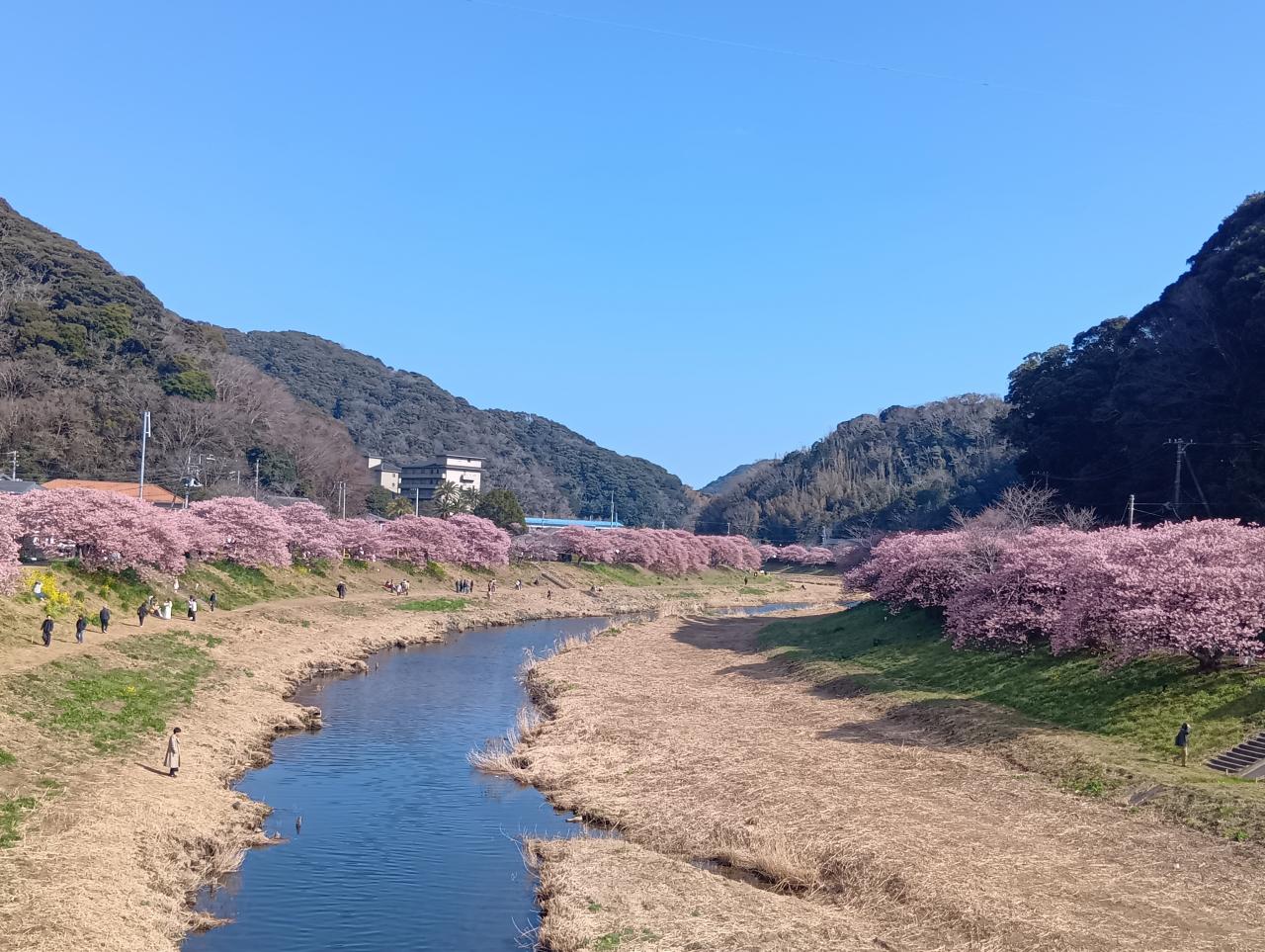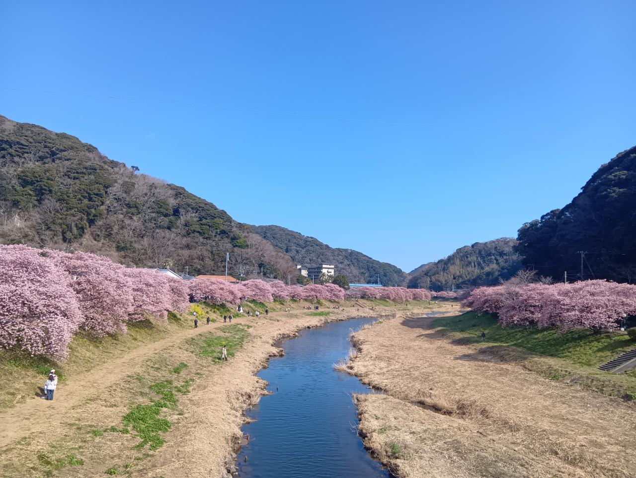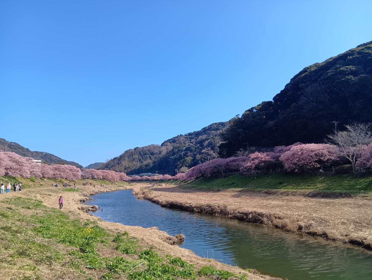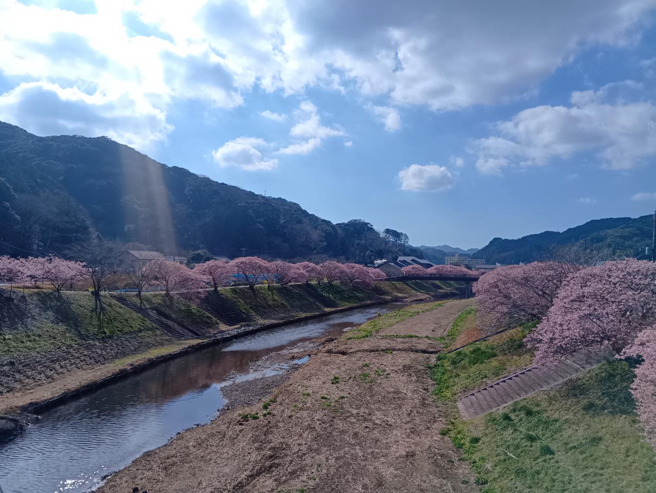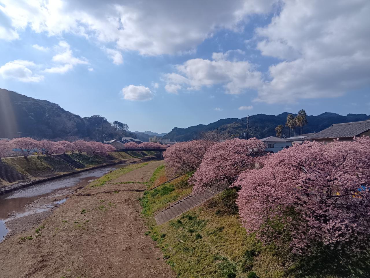 隠れた絶景スポットに超感嘆します!14時45分頃、約1時間半の河津桜の観賞でした。