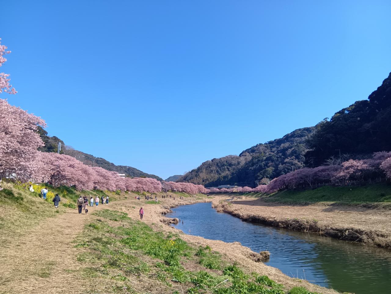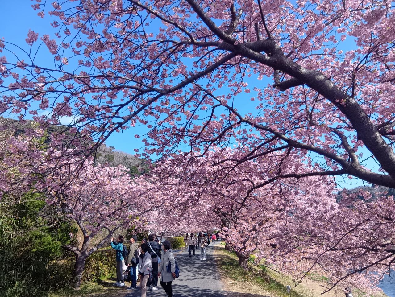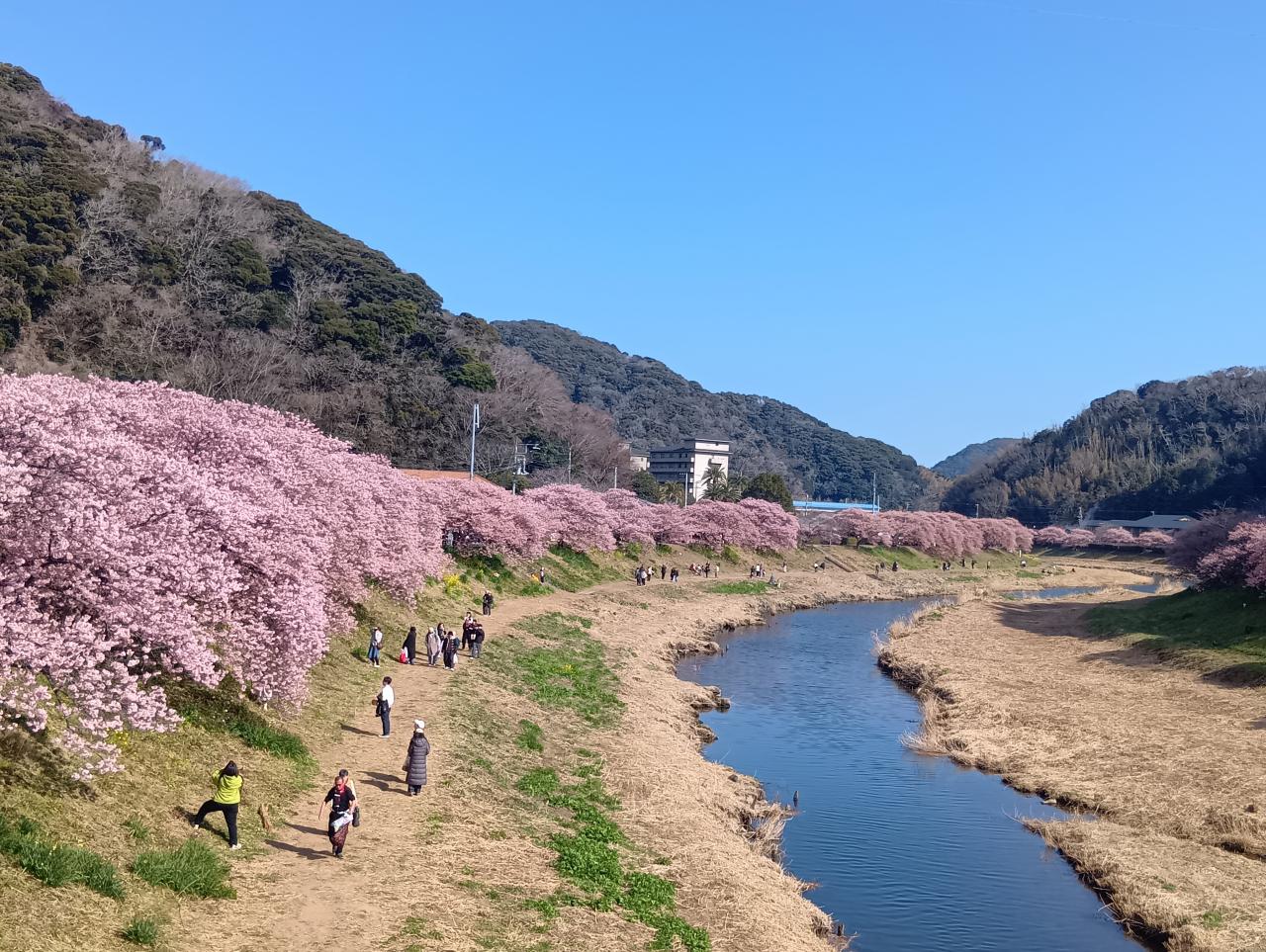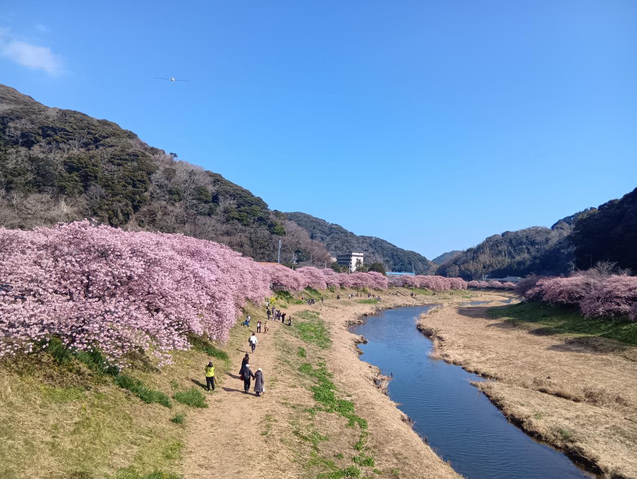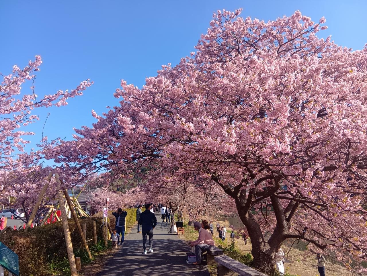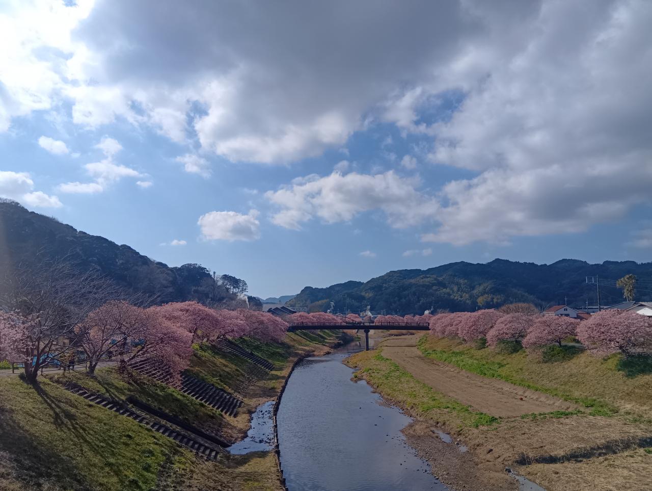 隠れた絶景スポットに超感嘆します!14時45分頃、約1時間半の河津桜の観賞でした。