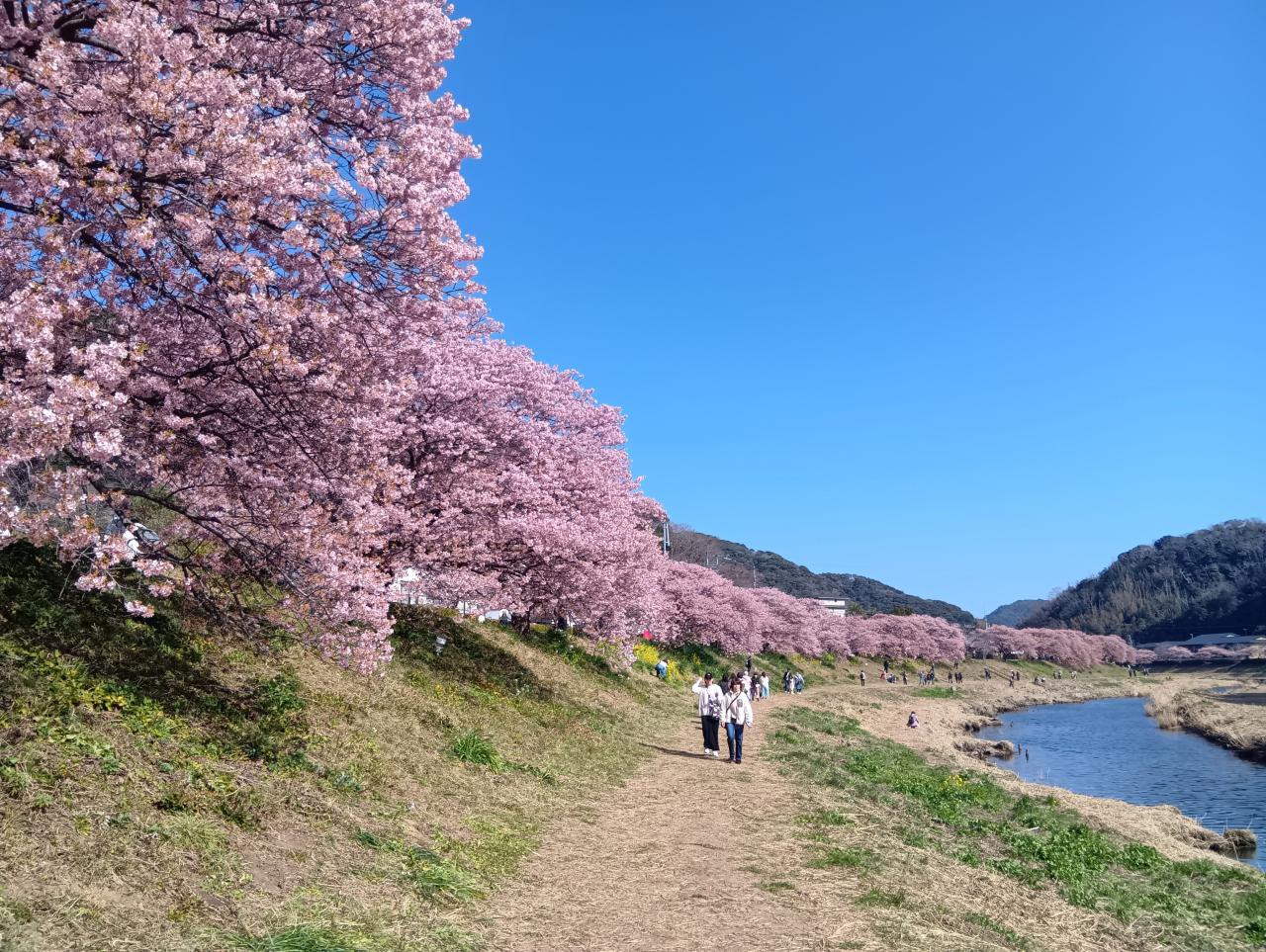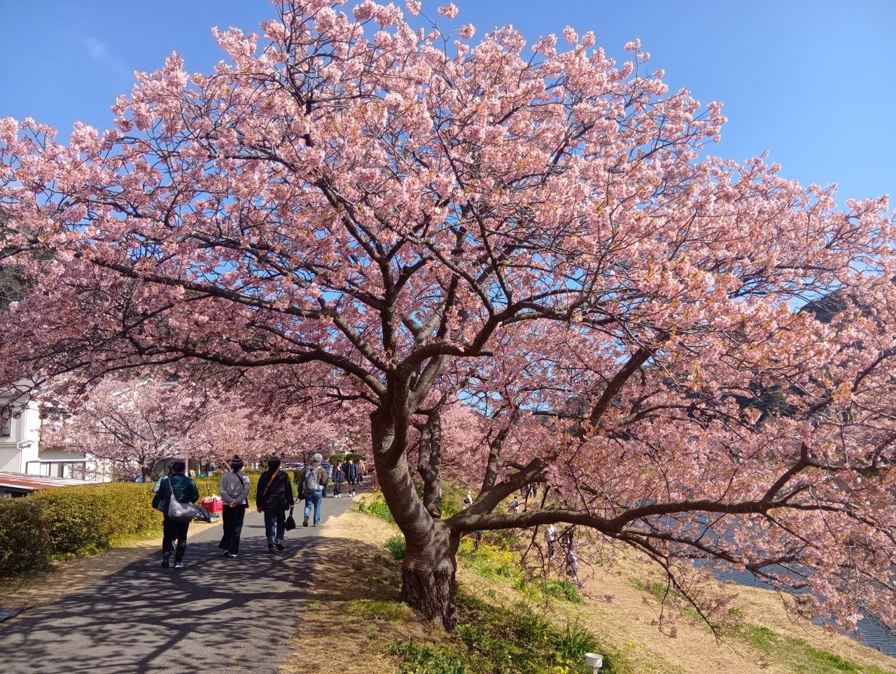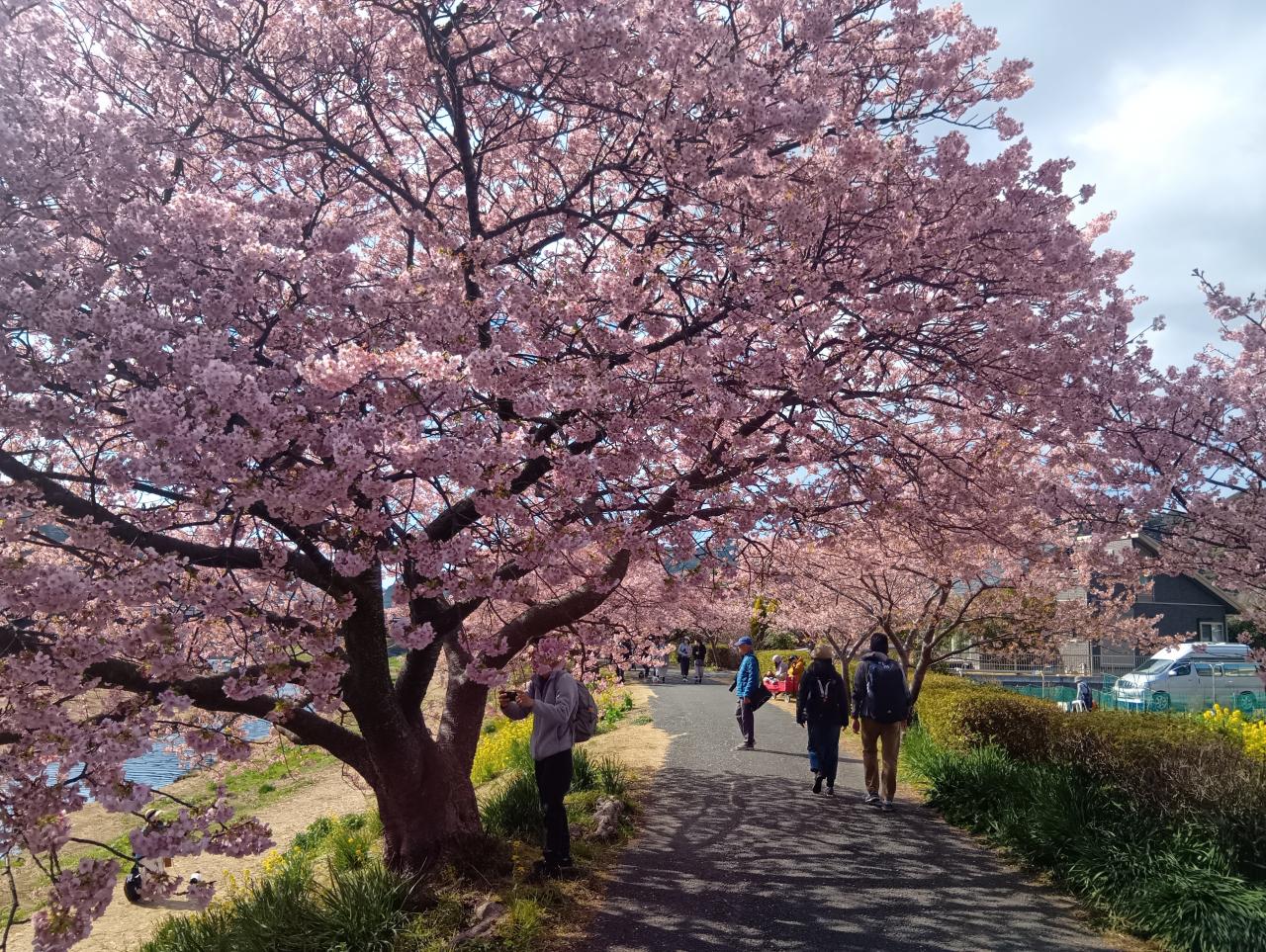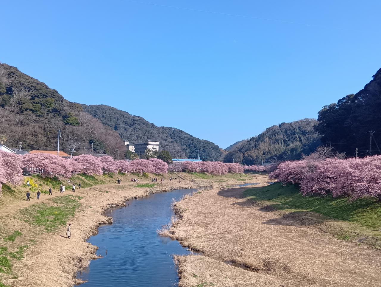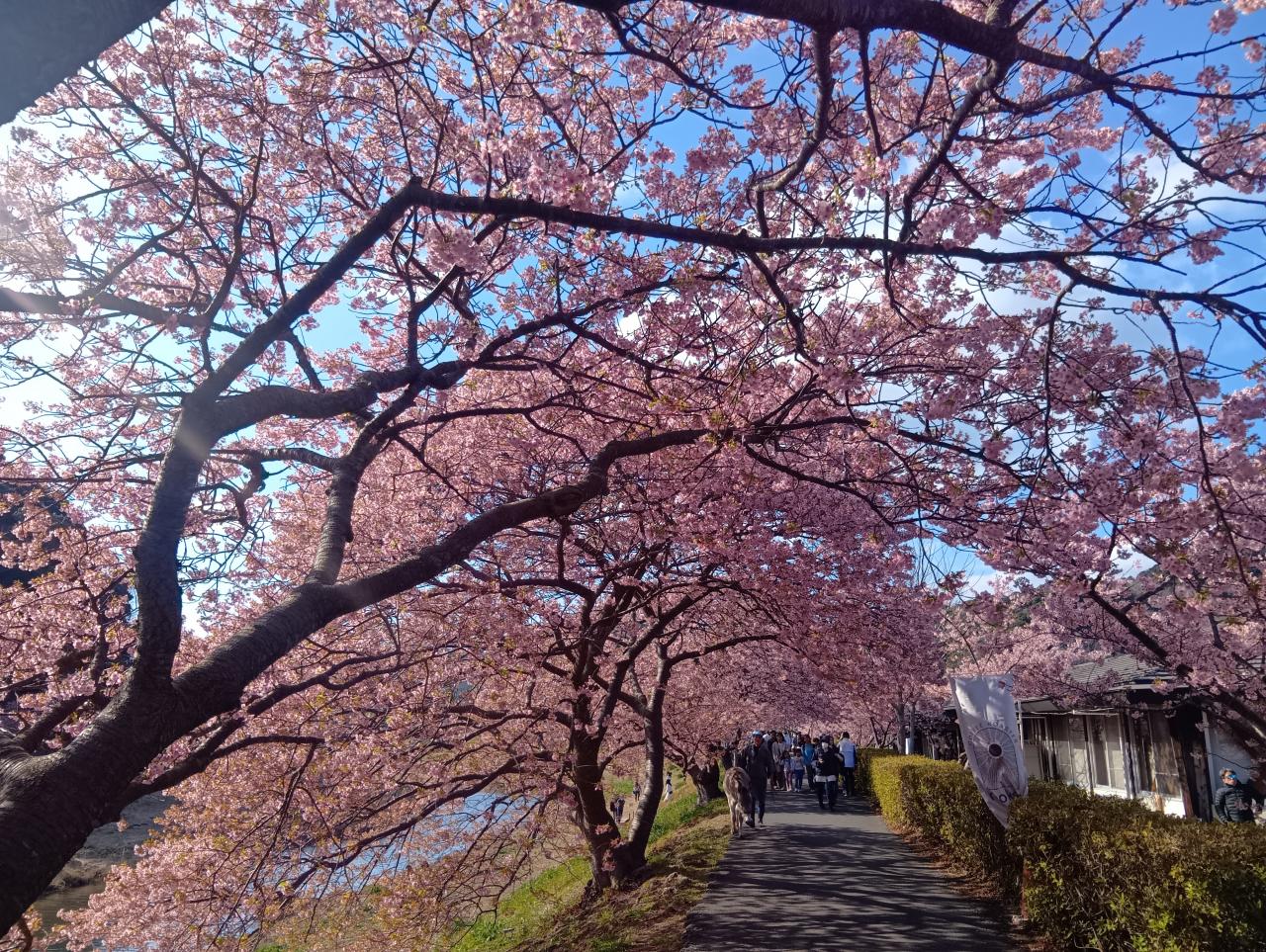 隠れた絶景スポットに超感嘆します!14時45分頃、約1時間半の河津桜の観賞でした。