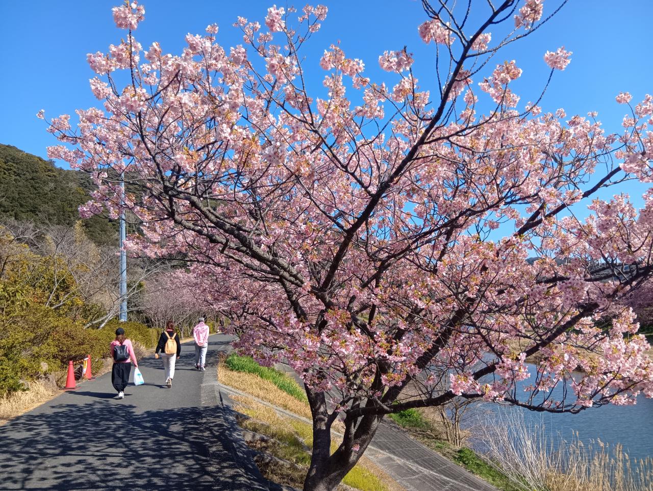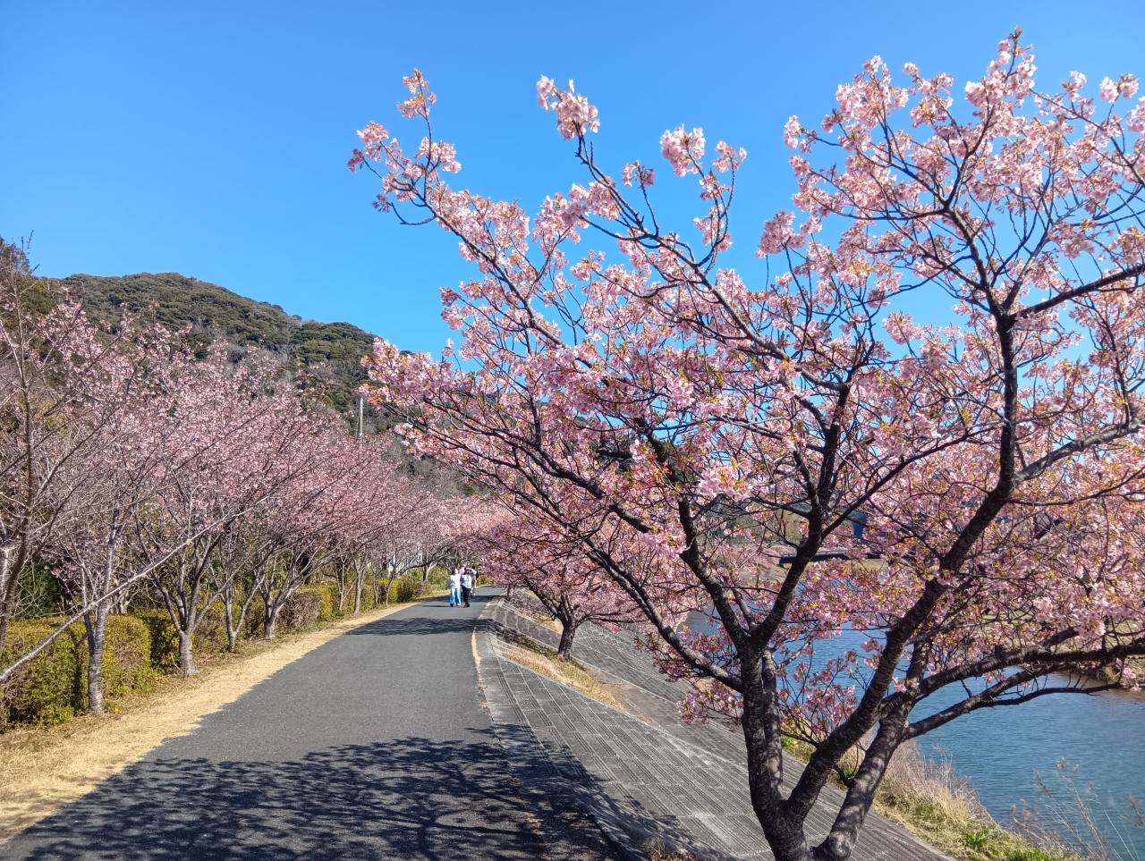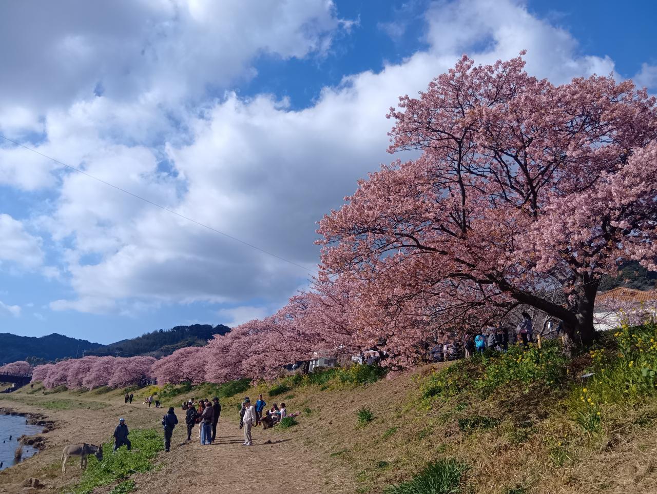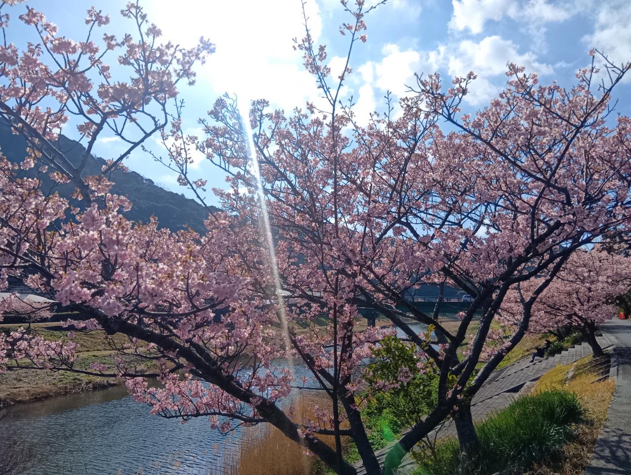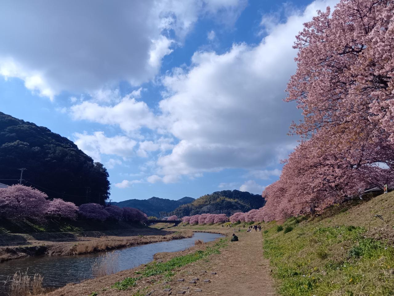 隠れた絶景スポットに超感嘆します!14時45分頃、約1時間半の河津桜の観賞でした。