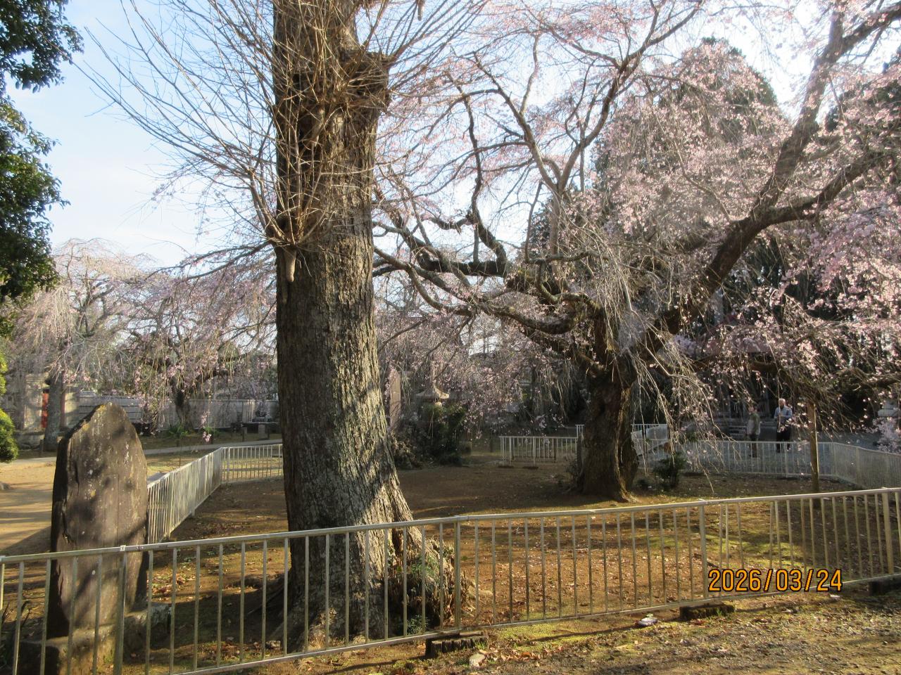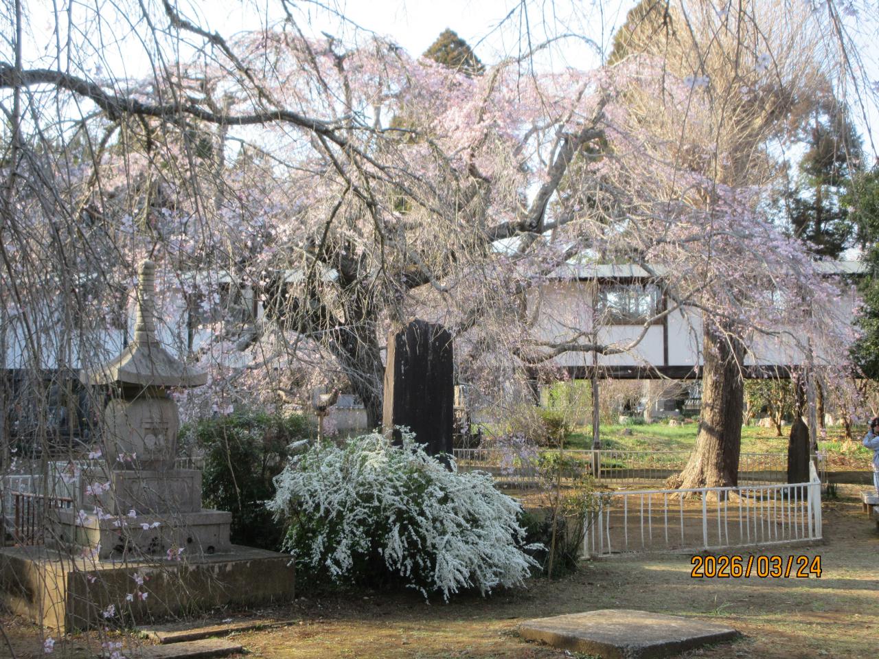 ここには3本の枝垂れ桜があった。まだ樹齢が若いせいか、竹林山妙光寺(みょうこうじ)の寂しい枝垂れ桜と比べてもまずまずであった。