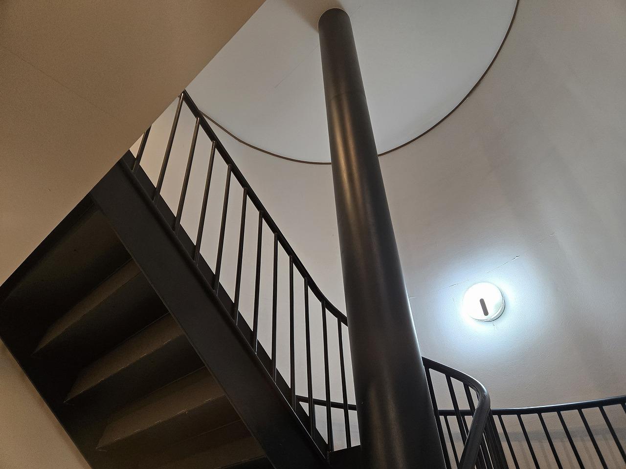 階段は螺旋階段。