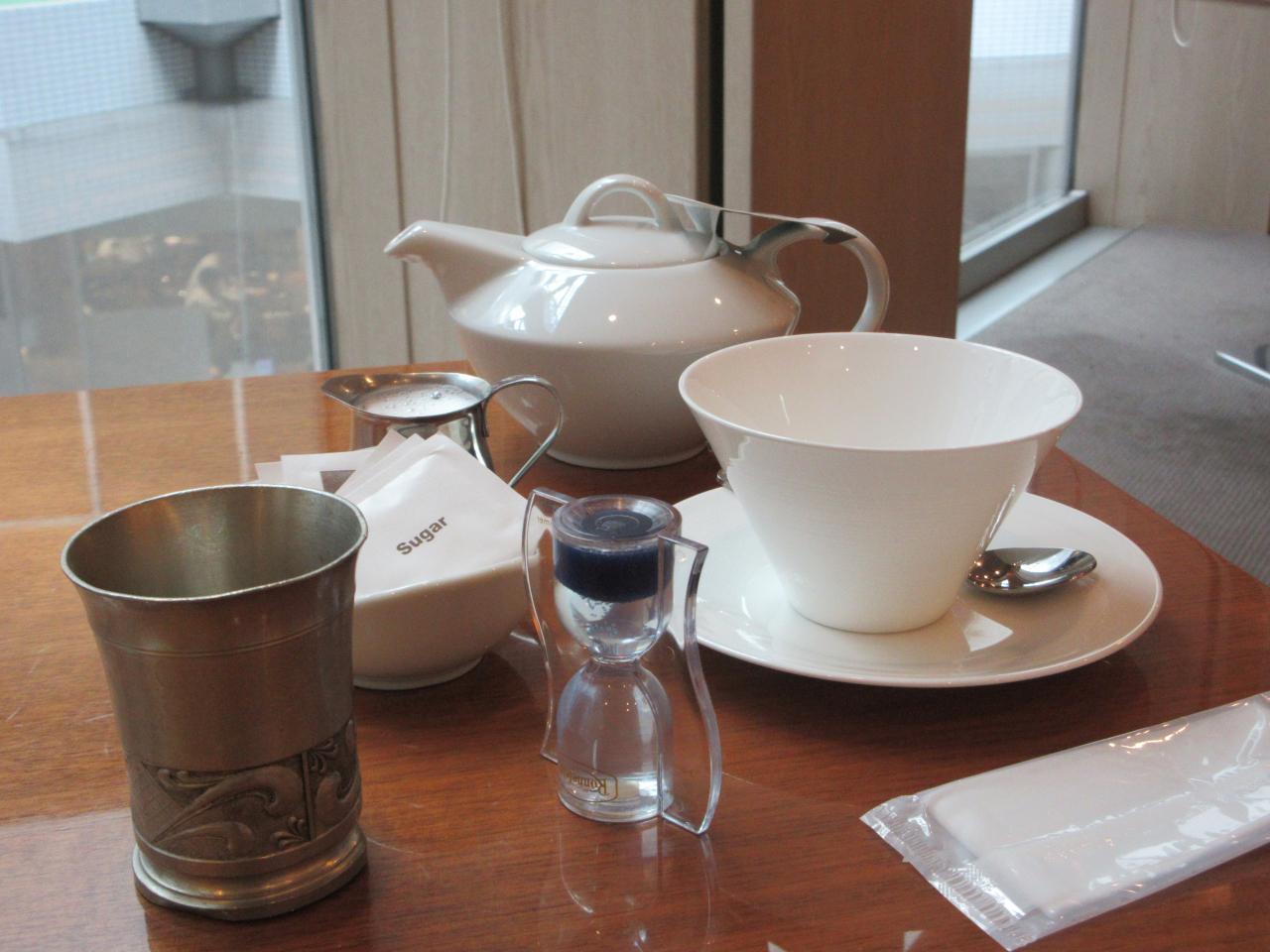 ホテルに戻り、ロビーラウンジで一休み。紅茶は砂時計ではなく水時計?すべて上に上がったら召し上がってくださいとのことでした。