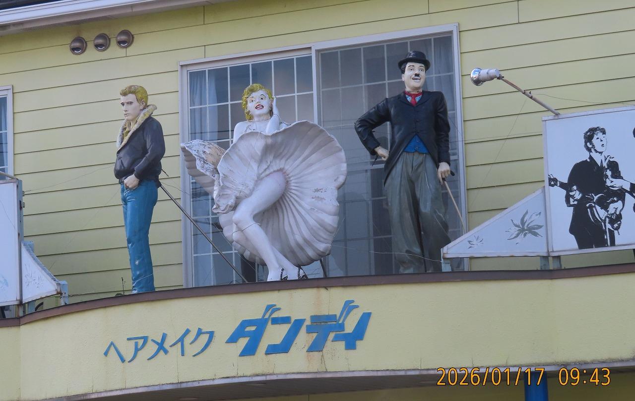 そして店舗にはあのエルヴィス、マリリン、チャップリンと言った有名人たちが実物大人形で踊る(笑) -