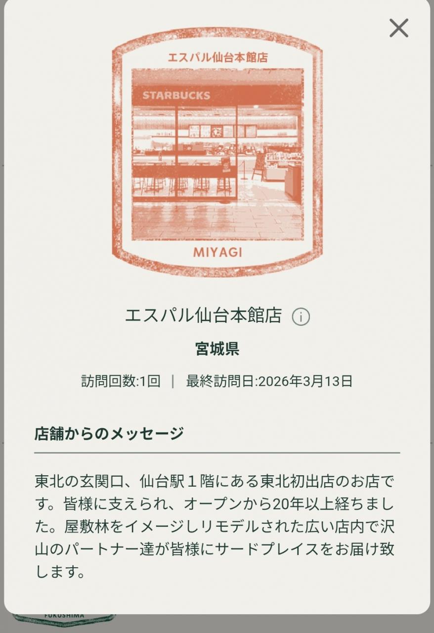 宮城のスタバの都道府県メダルをもらってきました!