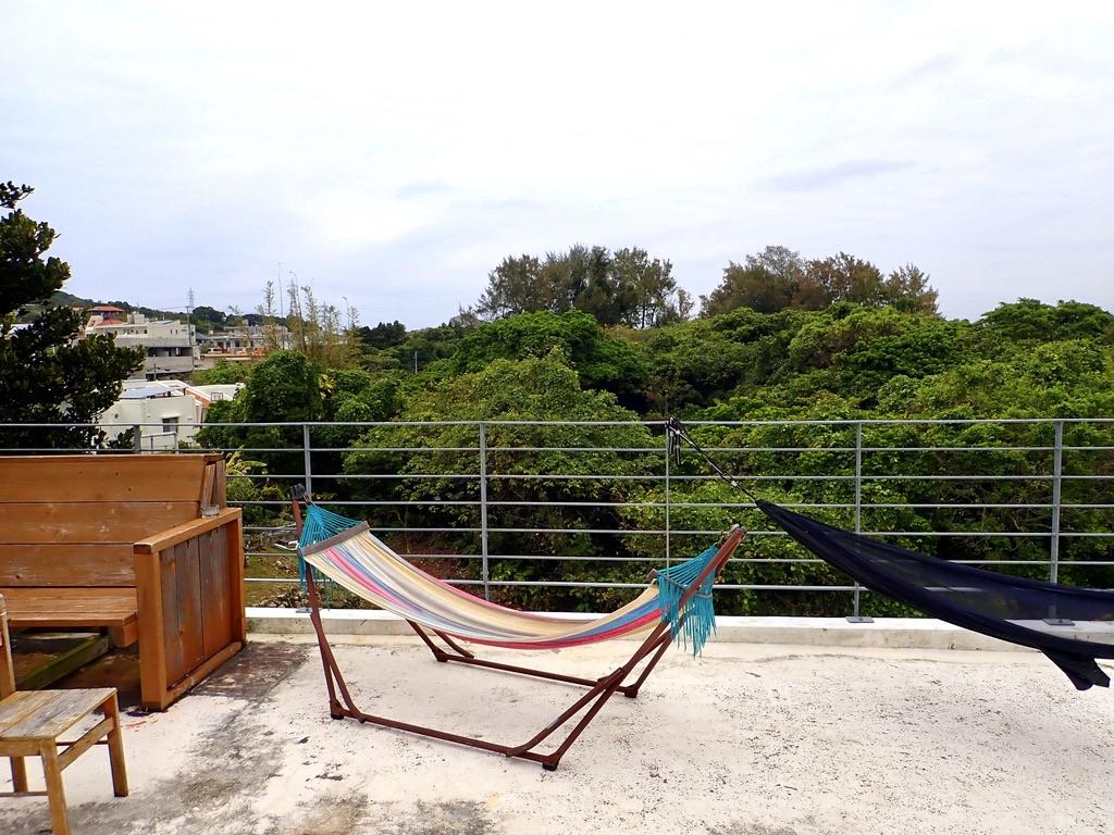 ゲストハウス、琉球庵に帰って、屋上でゆっくりします。 -