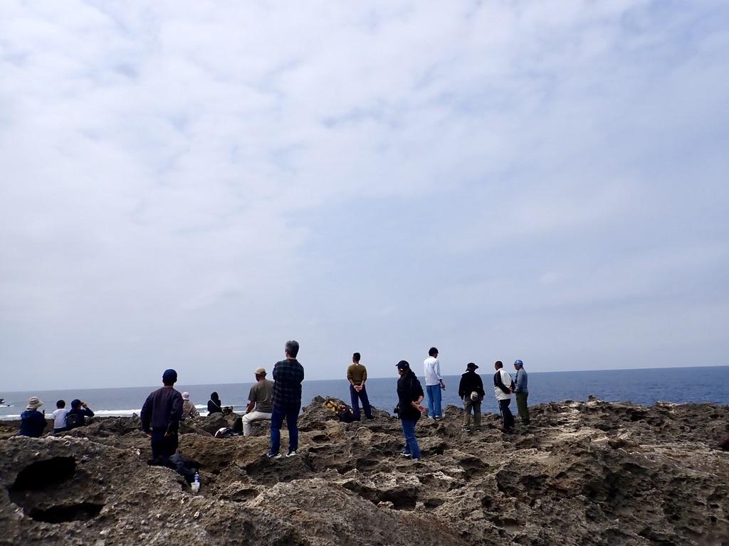 岬の先には人が集まっていて、クジラが通るのを待っていました。